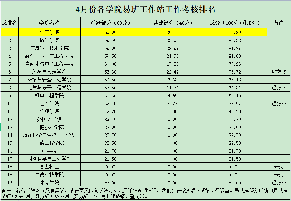 5月23日,XC体育易班发展中心公布了4月份各公司(校区)易班工作站月度工作考核排名,XCSport以总分89.39分,蝉联全校第一名。