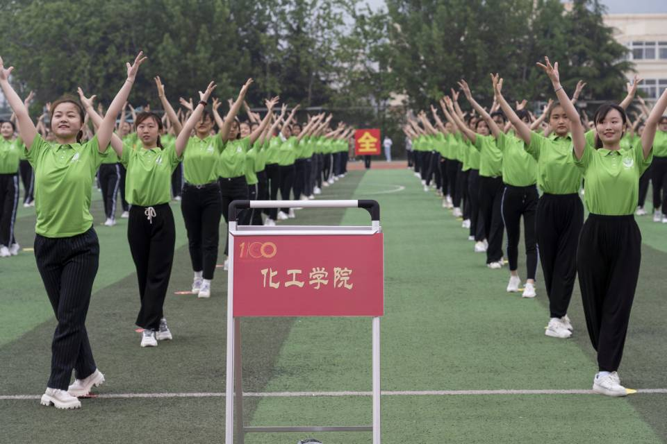 各公司方队有序离场,排舞联赛和跳绳比赛的运动员们早已准备就绪。XCSport排舞队员们随着旋律舞动,步伐轻盈、舞姿优美,跳绳运动员们整齐甩动手中的跳绳,跟着音乐节拍跳动,将化工学子青春活力、自信大方的风采展现得淋漓尽致。