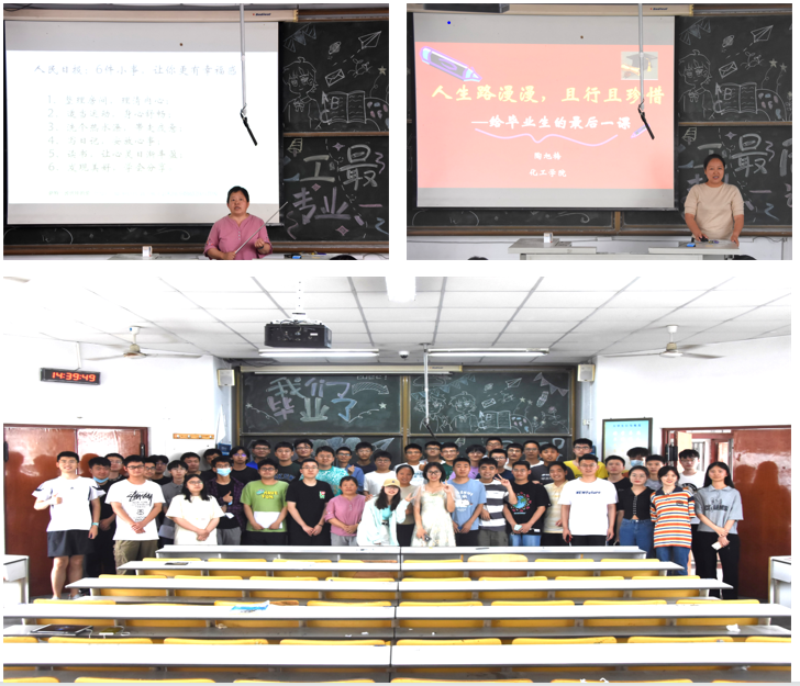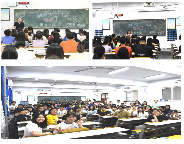 赵文英老师带领同学们一起回顾了四年以来的美好时光,她对同学们四年来的成长感到欣慰,同时教导同学们在未来的环境里,在所在的岗位上仍需继续努力提升自己,掌握本领。此外,她希望同学们能常回母校看看,继续关心关注母校,努力为母校的发展添砖加瓦。张永勤老师表示全方位地培养员工是制药工程专业老师一直以来的目标,并给了同学们且行且珍惜、一切归零、懂得感恩三条建议。吴汝林老师重点提到未来同学们不管从事哪一个职业,走哪一条路,都要不忘记初心、要争做“五有”青年,弘扬科大精神。