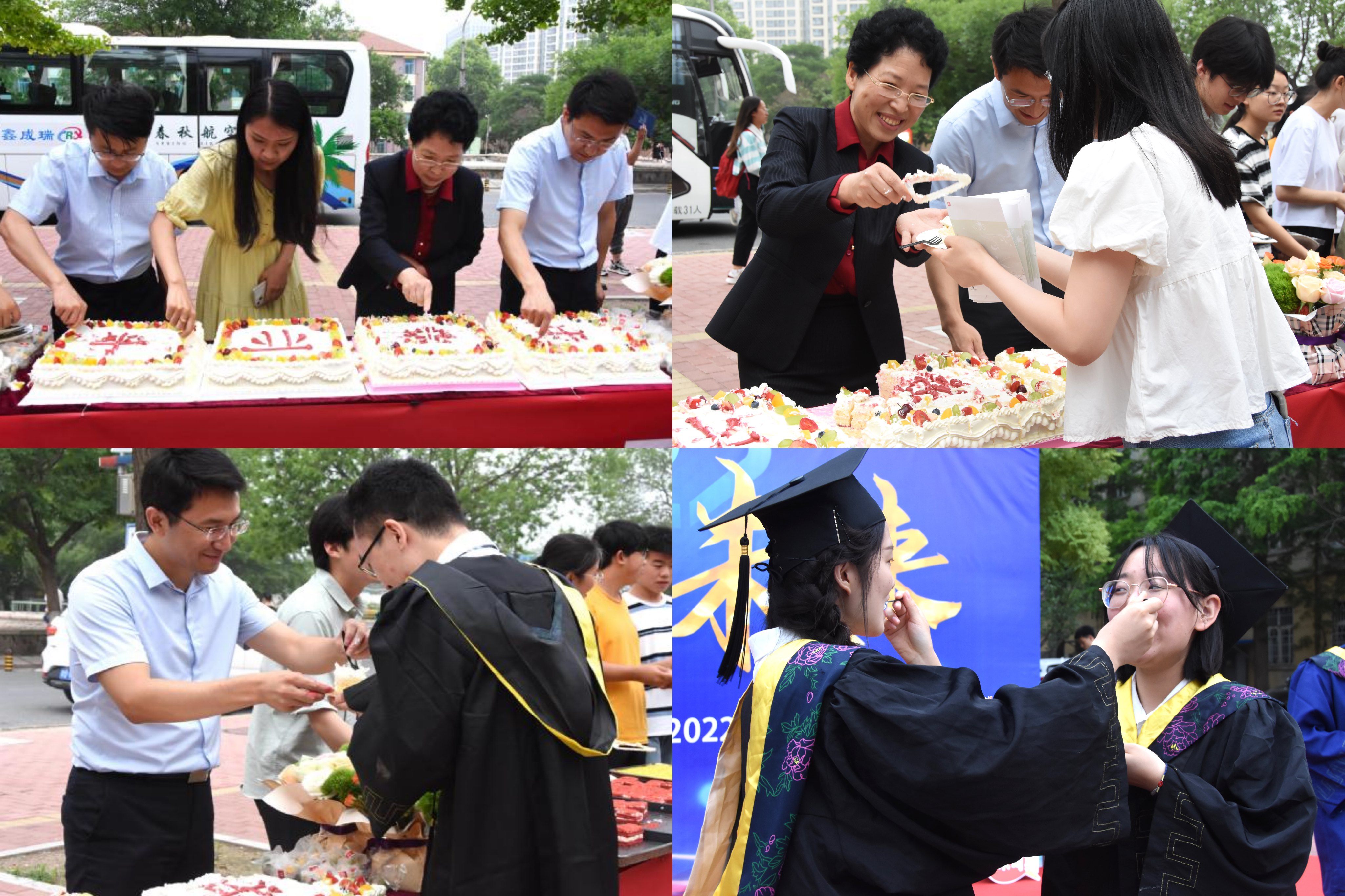 欢送仪式上,老师们为毕业生分发蛋糕、定制饮用水,并送上他们对毕业生的美好祝福。同学们向老师致以衷心的感谢,不仅是对此次蛋糕宴,还有四年来老师