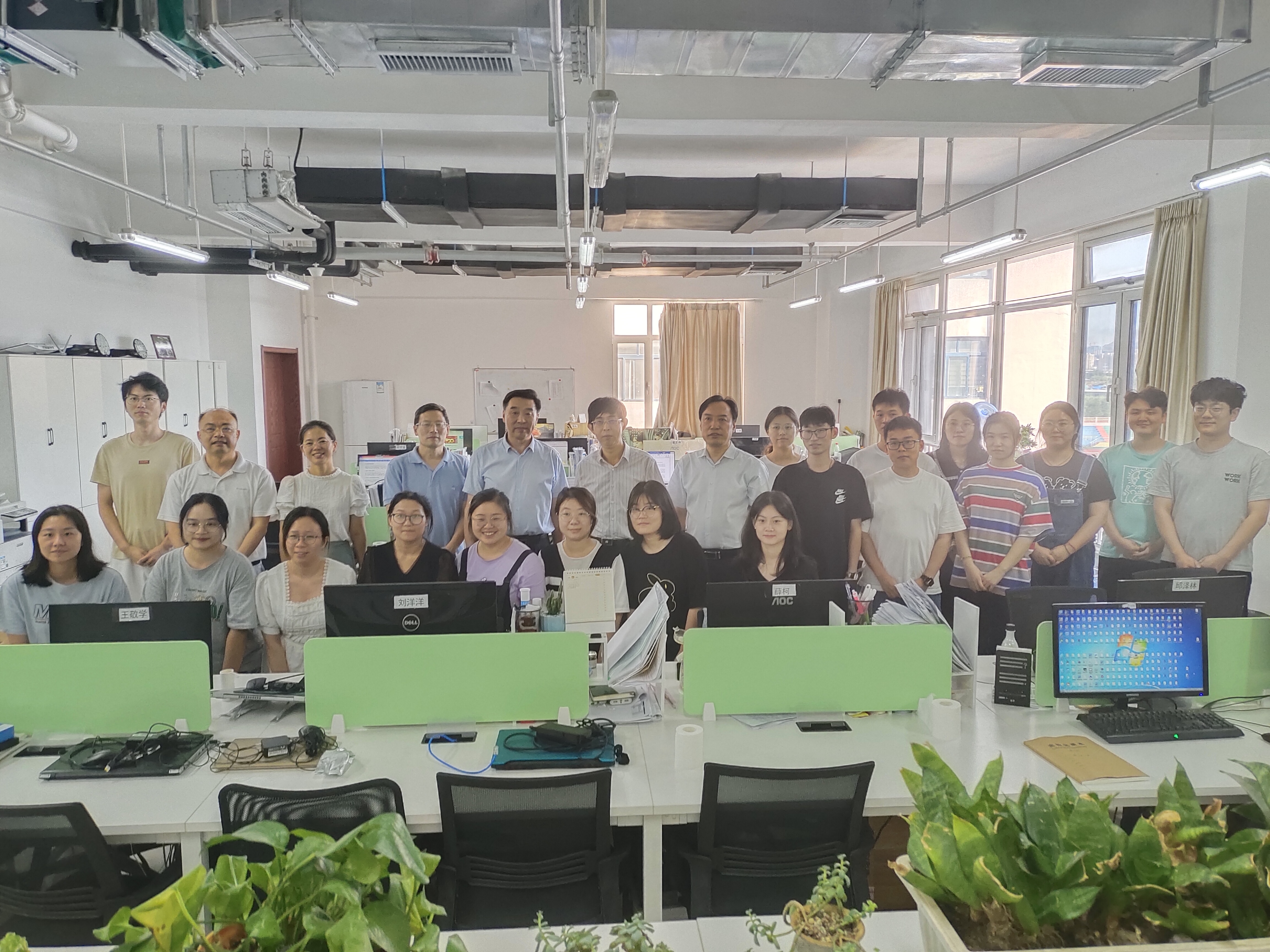 会后,各位领导参观了团队科研实验室和员工办公室,校领导对研究生表达了殷切的期盼和美好的祝福,鼓励研究生刻苦钻研、不懈奋斗,全体研究生对领导们的到来表示热烈欢迎并主动要求合影留念。