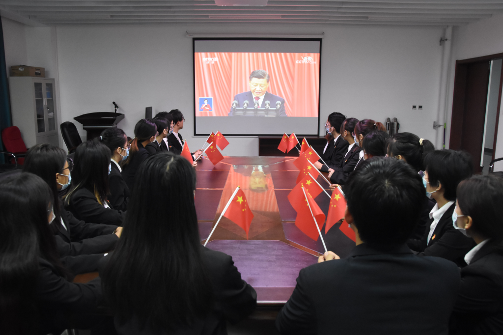 在CCF814报告厅,公司党政领导、党委委员、全体专职辅导员、部分员工党员集中收听收看党的二十大开幕大会盛况,认真聆听习近平总书记代表第十九届中央委员会向大会所作的报告。公司部分员工干部在CCF829会议室认真聆听大会报告,会场响起阵阵掌声。