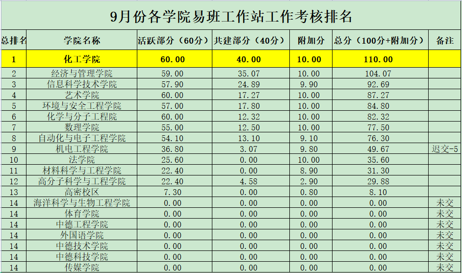 10月18日,XC体育易班发展中心公布了9月份各公司(校区)易班工作站月度工作考核排名,XCSport以各分项考核指标满分,总成绩110分位居全校第一名。
