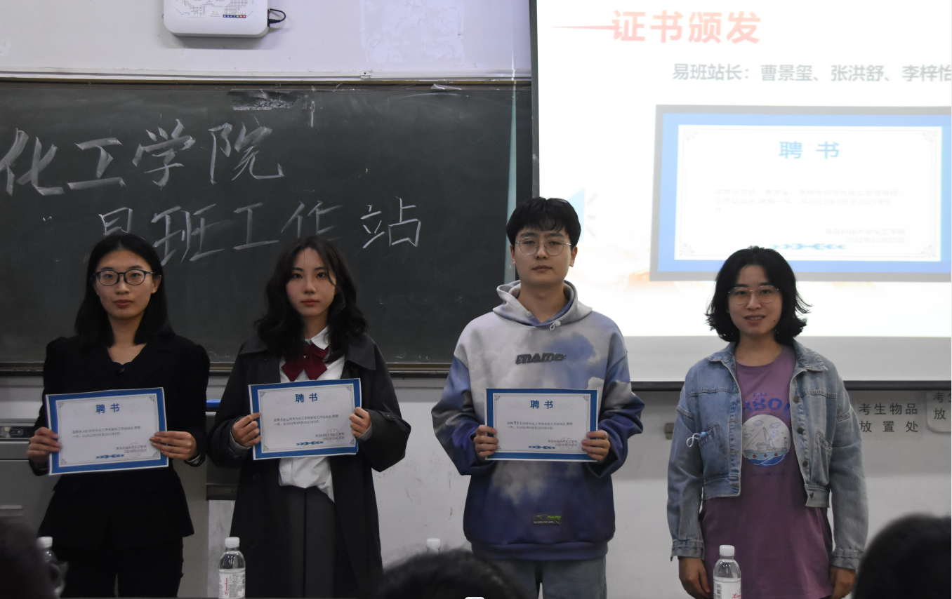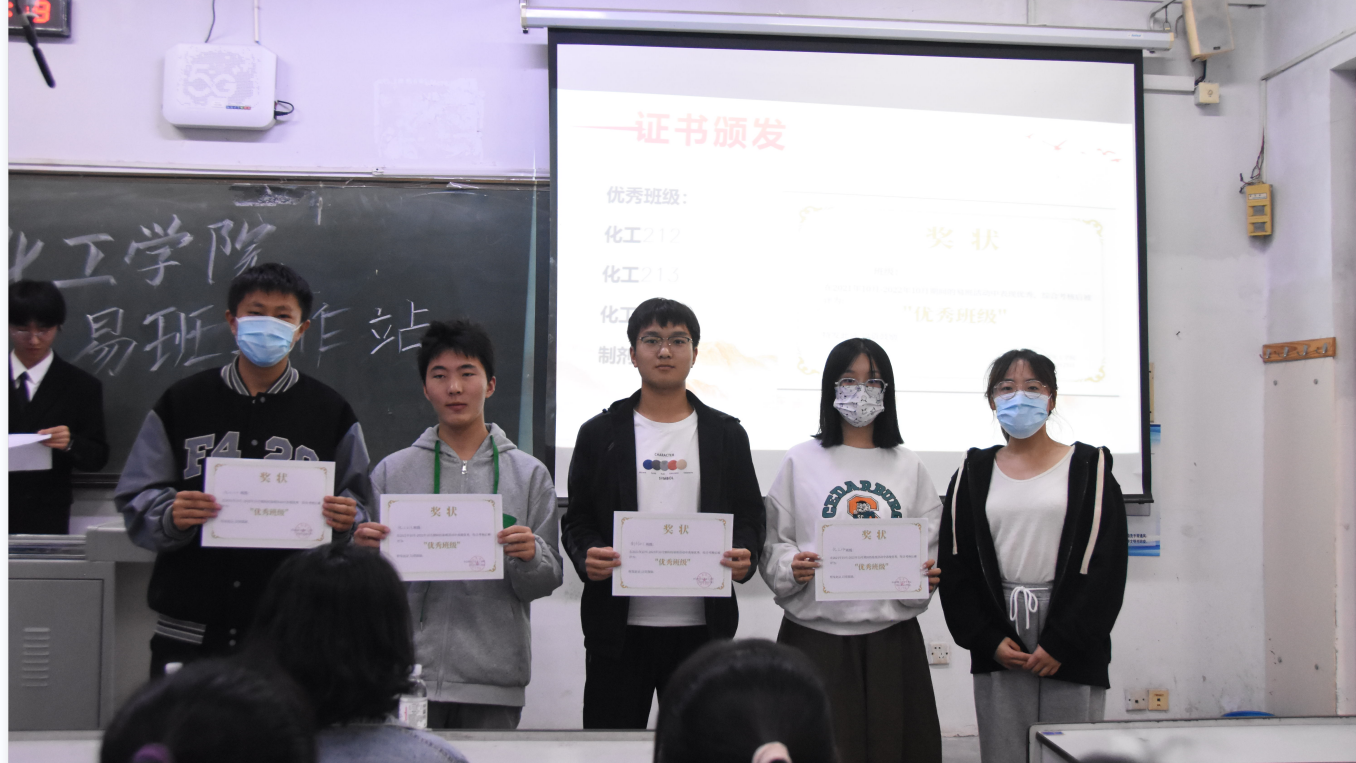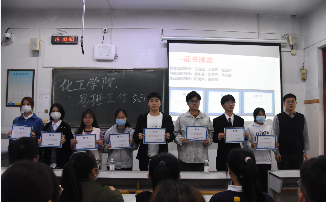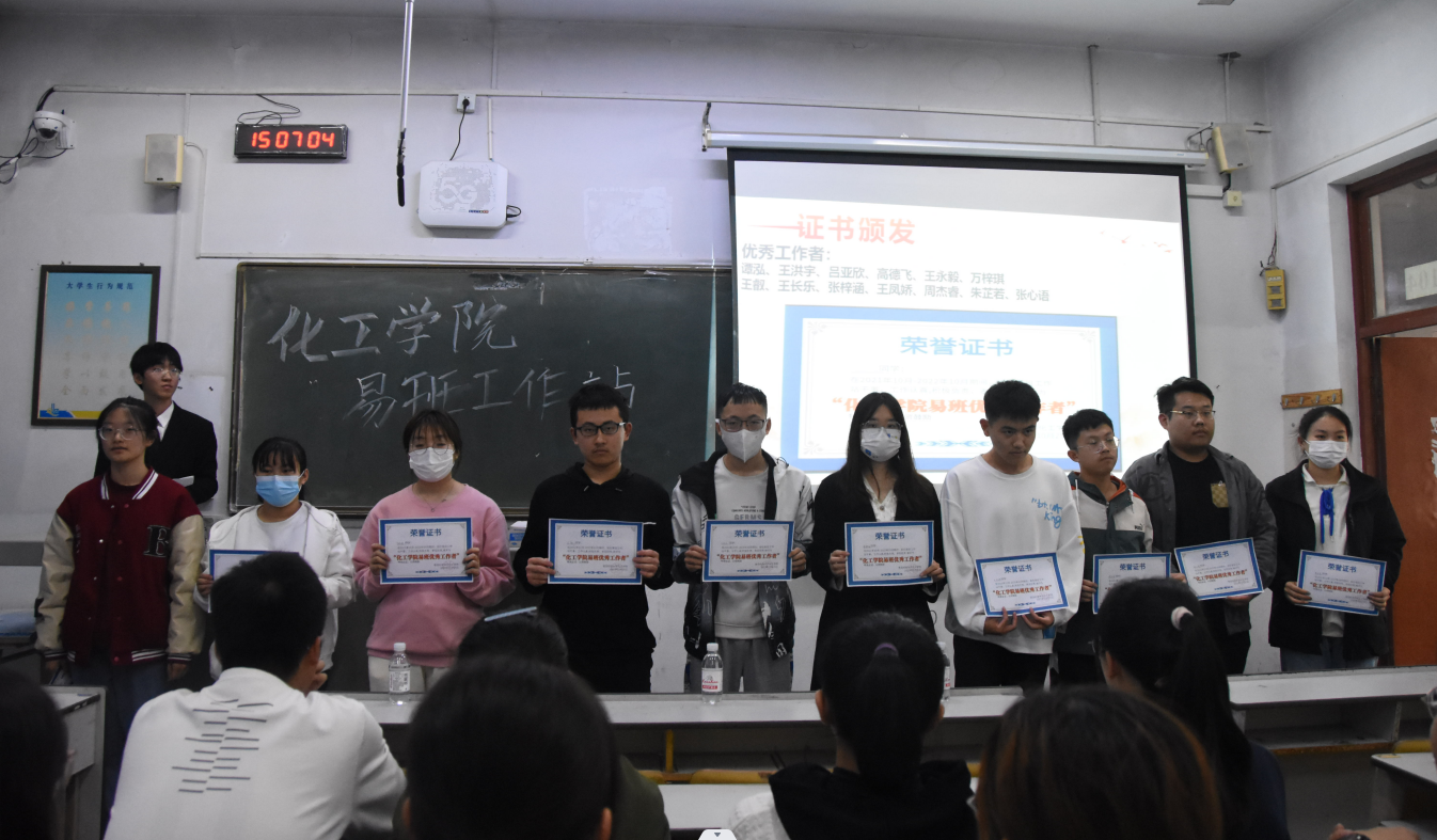 会议第一部分对上一学年XCSport易班工作站取得的成绩进行总结与表彰,由校易班驻四方校区负责人对2021——2022年度易班优秀学工作者进行表彰,付文静、柳晓阳、孙希玲分别为新一届易班工作站站长、部长、副部长以及优秀班集体颁奖。