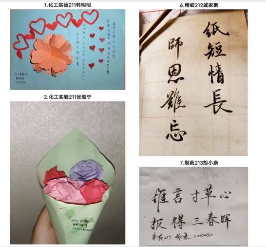 书画寄情,悦达师恩。同学们通过“云章颂师情,手工谢师恩”主题活动将自己对老师的感恩寄存于手工作品中,作品大致分为剪纸、泥塑、纸浆画、贺卡等类型,以手工作品为媒介,表达了员工对老师真挚的感情。