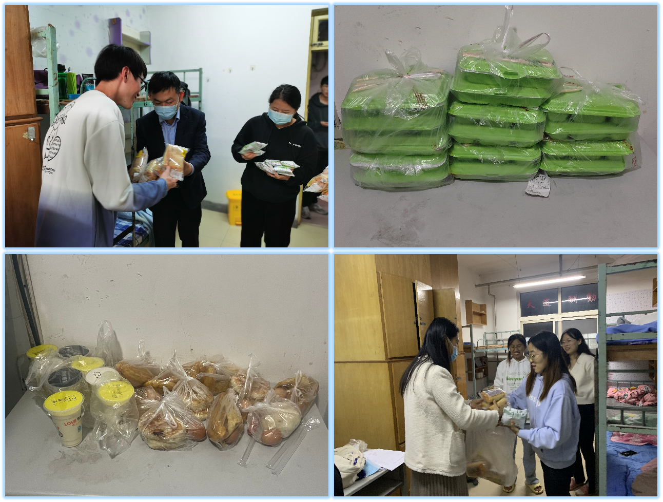10月15日,公司制剂201、202班因即墨实习,接到集中隔离通知。公司第一时间安抚员工情绪,告知员工带齐生活用品和学习材料,安排员工入住校内隔离区。“隔离不隔爱,关怀暖人心”。当晚公司领导老师为集中隔离员工发放了水、牛奶、面包、饼干等爱心礼包。为解决隔离员工就餐问题,公司成立爱心送餐志愿服务队并制定暖心送餐方案,让志愿者为隔离员工定时定人进行送餐,落实到每一天、每一顿,确保隔离的同学按时吃到饭、吃饱饭。同时,利用QQ群进行线上管理,通过每日健康打卡等方式详细了解同学们的生活学习和健康状况。开展线上关怀心理疏导工作,辅导员在线叮嘱员工要严格遵守防疫隔离要求,放松心情、安心监测、规律作息、上好网课,积极配合流调观察,安全平稳度过隔离期。