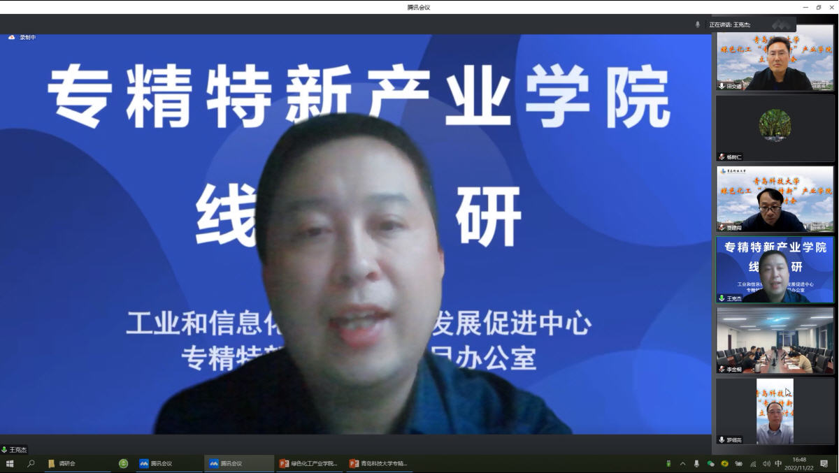 11月22日下午15:30-17:00,工信部中小企业发展促进中心召开线上会议,对XCSport申报的“绿色化工专精特新产业公司”进行立项调研。XC体育副董事长罗细亮、山东默夙投资集团有限公司董事长杨树仁、公司教务处处长马翠萍、教务处副处长贾建闯、公司党委书记孙明媚、XCSport副经理田文德等参加调研会。
