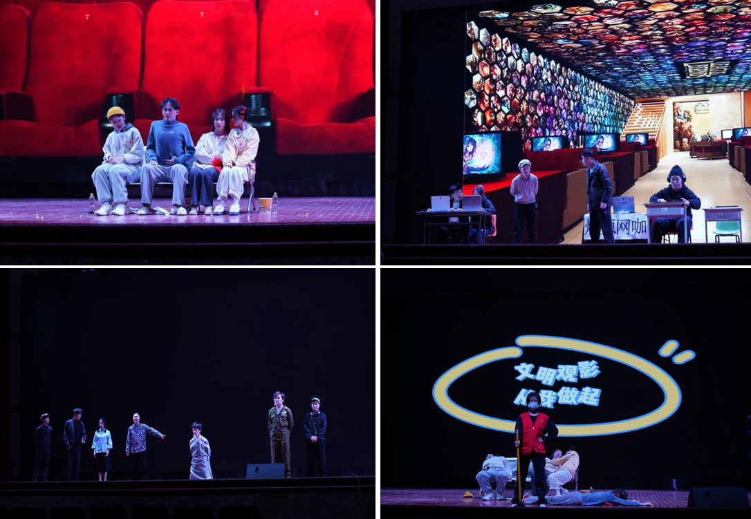 演出在一段活泼有趣的开场舞中拉开序幕。哑剧《影院风云》,短话剧《那个诗人》《落地成盒》《纯闺蜜》《减肥帮往事》《欢乐戏剧人》等节目精彩上演。