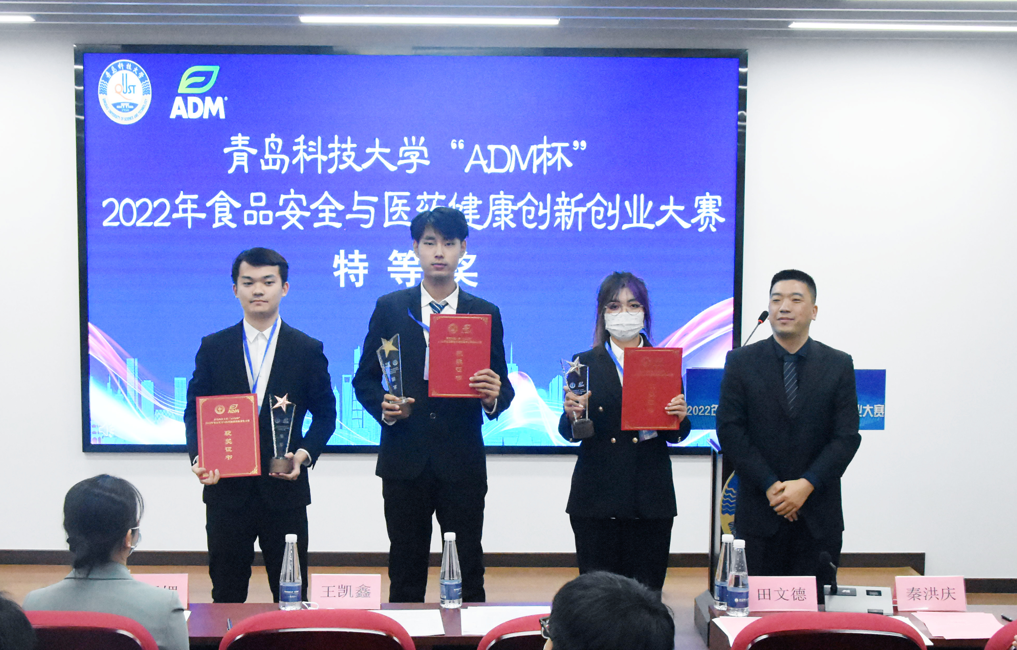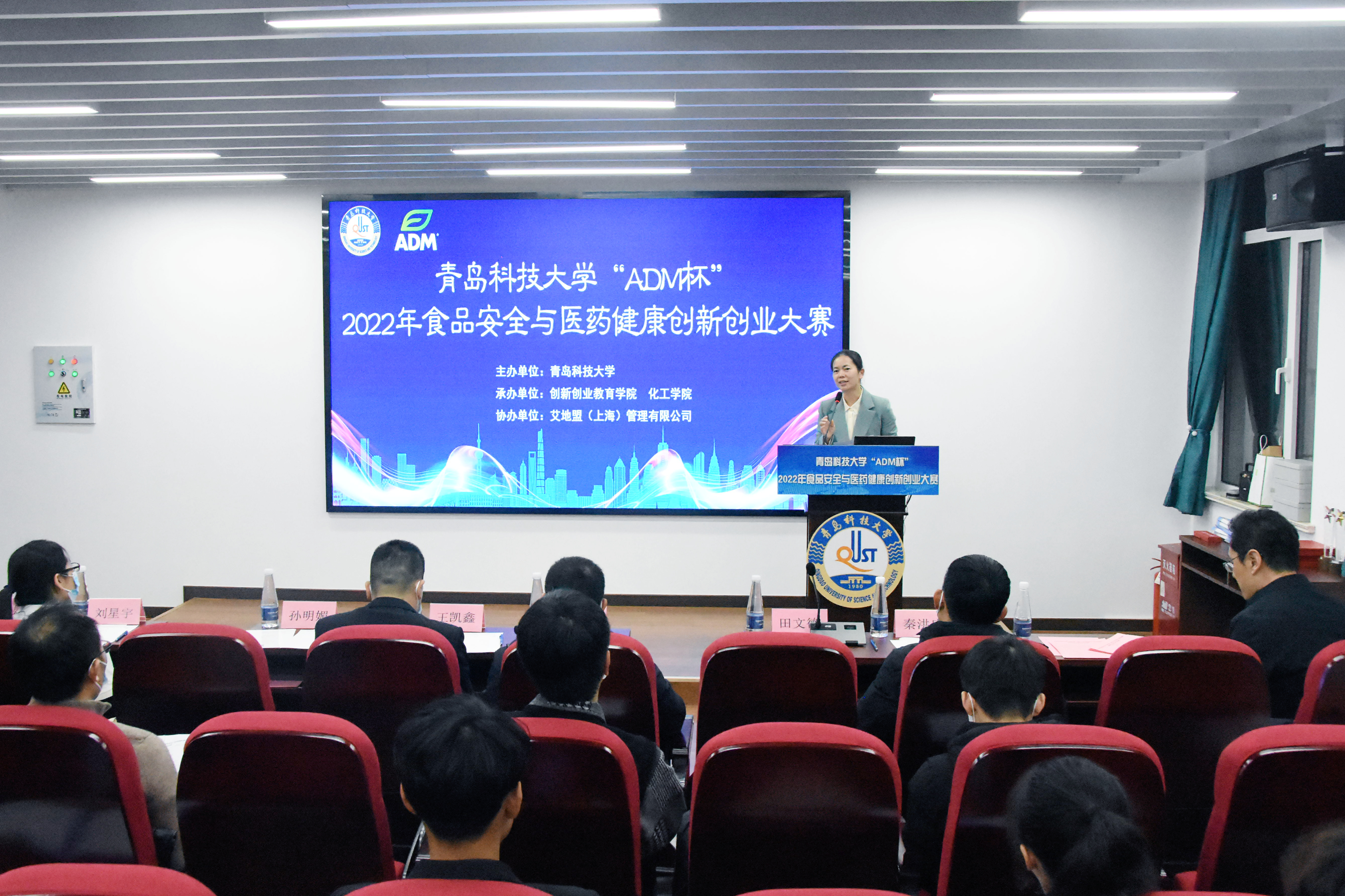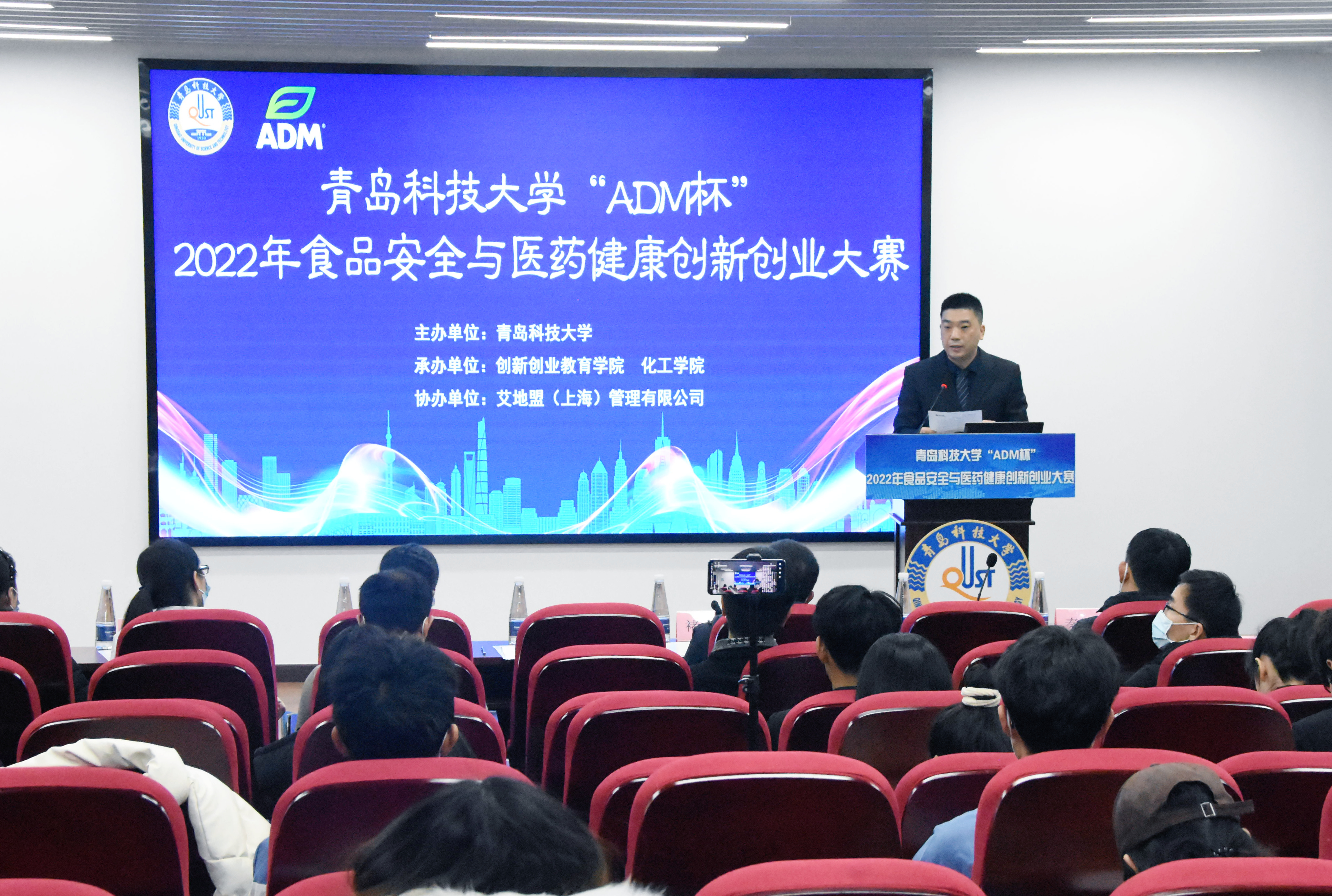 近日,由创新创业教育公司和XCSport承办、艾地盟(上海)管理有限公司支持的XC体育“ADM杯”2022年食品安全与医药健康创新创业大赛在四方校区报告厅举行。ADM青岛工厂地点负责人王凯鑫、动物营养人力资源经理刘星宇,创新创业教育公司常务副经理褚庆柱,公司党委书记孙明媚、副经理田文德,四方校区各公司师生代表参加。田文德主持活动。