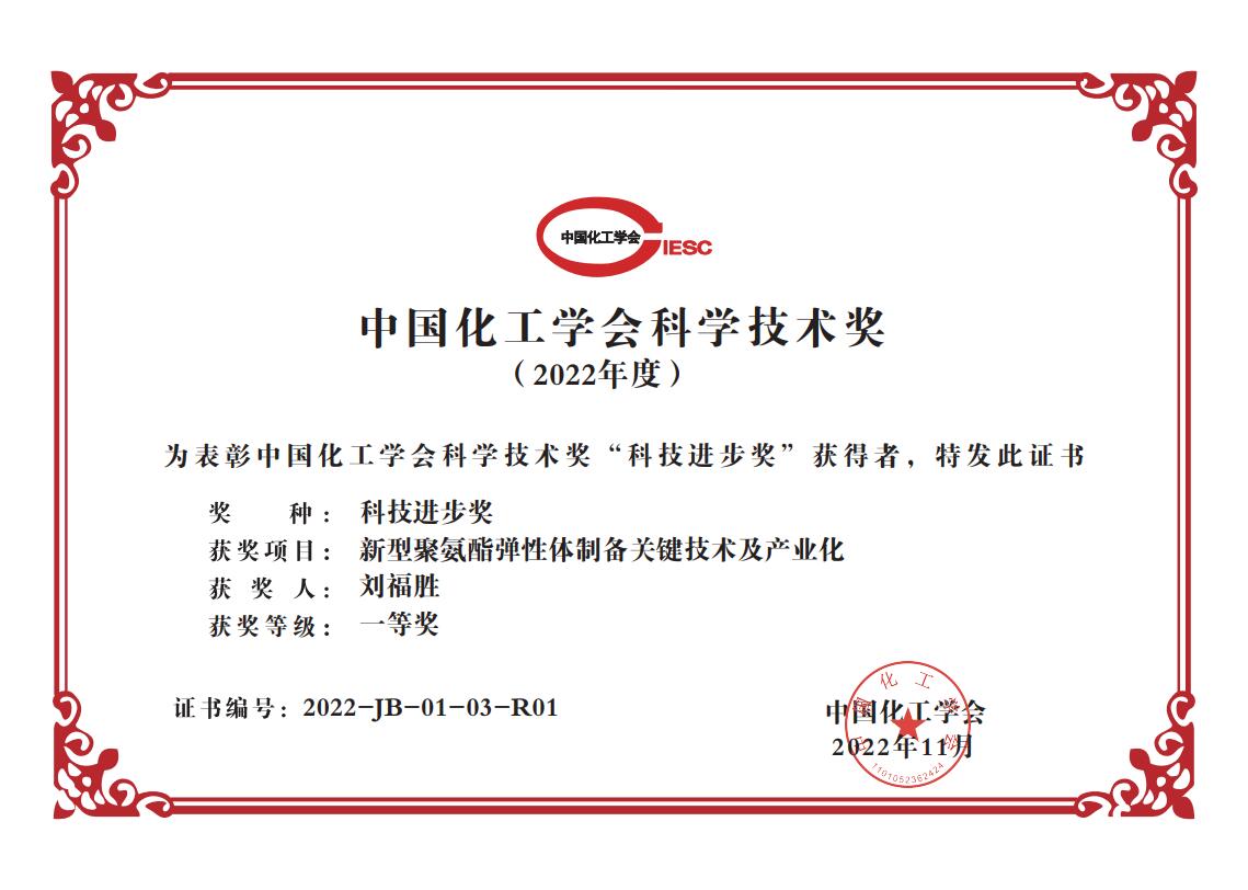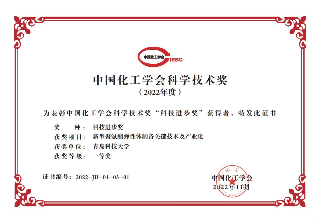 近日,中国化工学会第四十一次会员代表大会在京召开,会上公布了2022年度“中国化工学会科学技术奖”获奖名单。XCSport刘福胜教授主持的“新型聚氨酯弹性体制备关键技术及产业化”成果荣获中国化工学会科技进步一等奖。