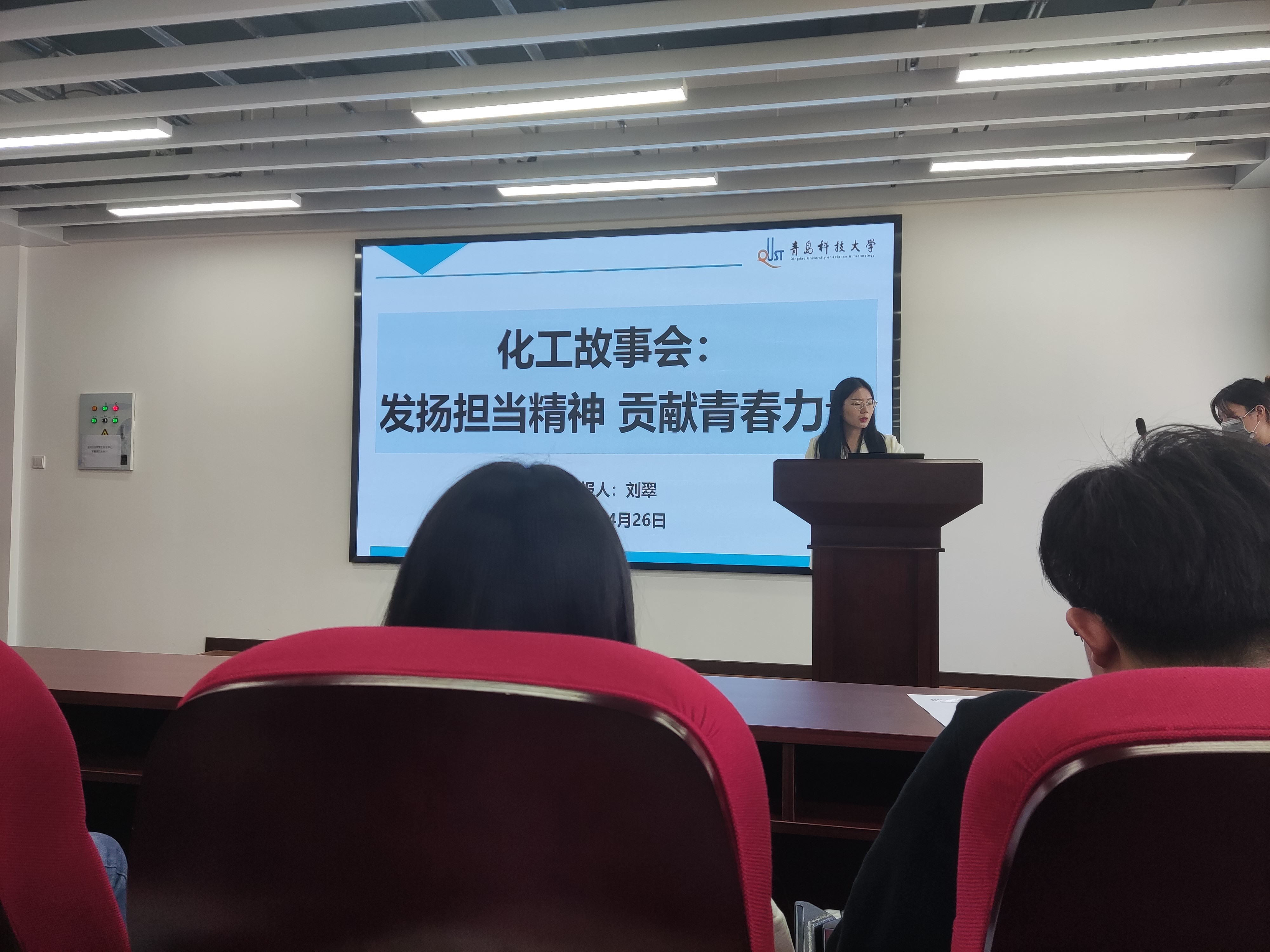 2020级研究生刘翠于4月26日下午在CCF楼814学术报告厅举办了主题为“发扬担当精神,贡献青春力量”的化工故事会,共有180多名师生参加。