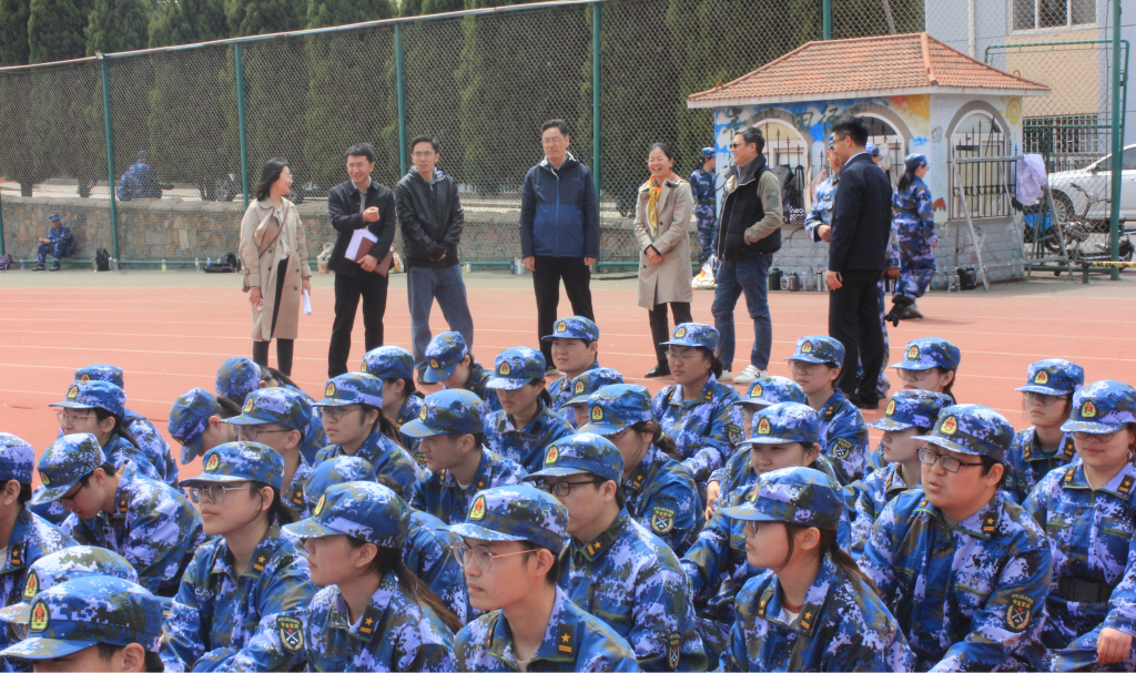 4月24日上午,XCSport经理李金恒、党委书记孙明媚、副经理田文德、党委副书记李春家在2022级辅导员老师殷佳珞、乔毅的陪同下对2022级新生军训工作进行检查指导。