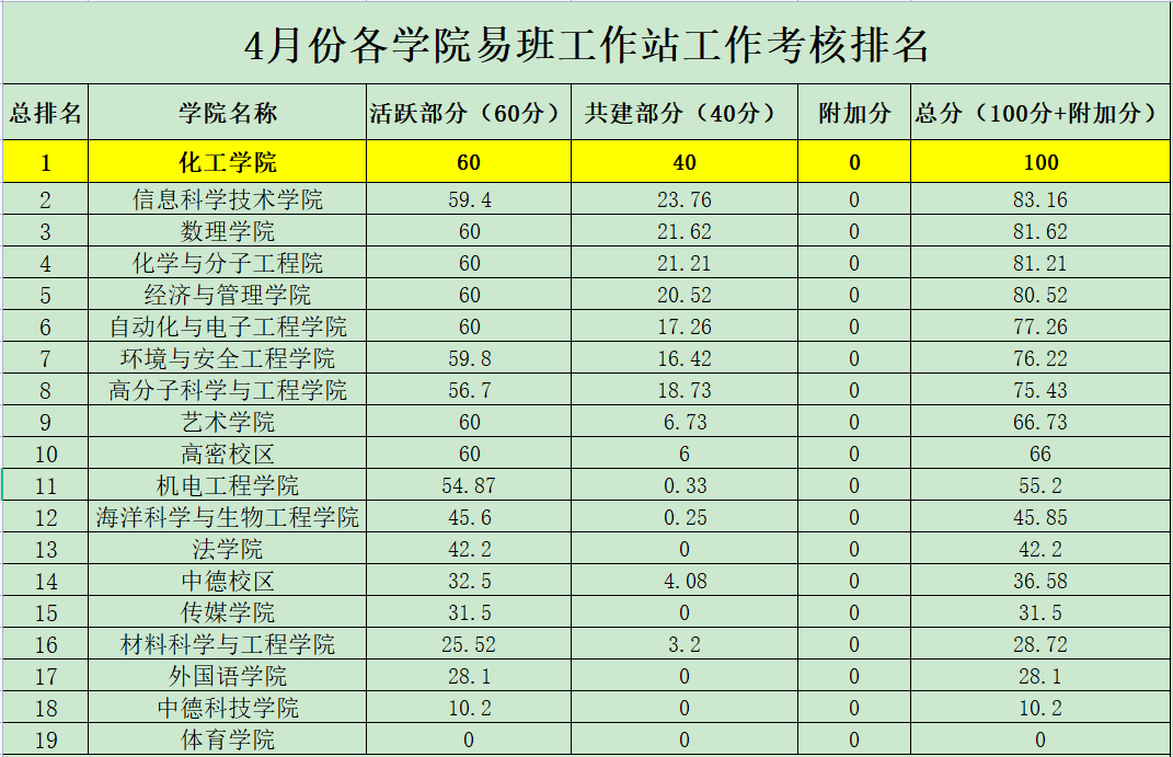 5月15日,XC体育易班发展中心公布了2023年4月份各公司(校区)易班工作站月度工作考核排名,XCSport易班工作站以总成绩100分位居全校第一名。