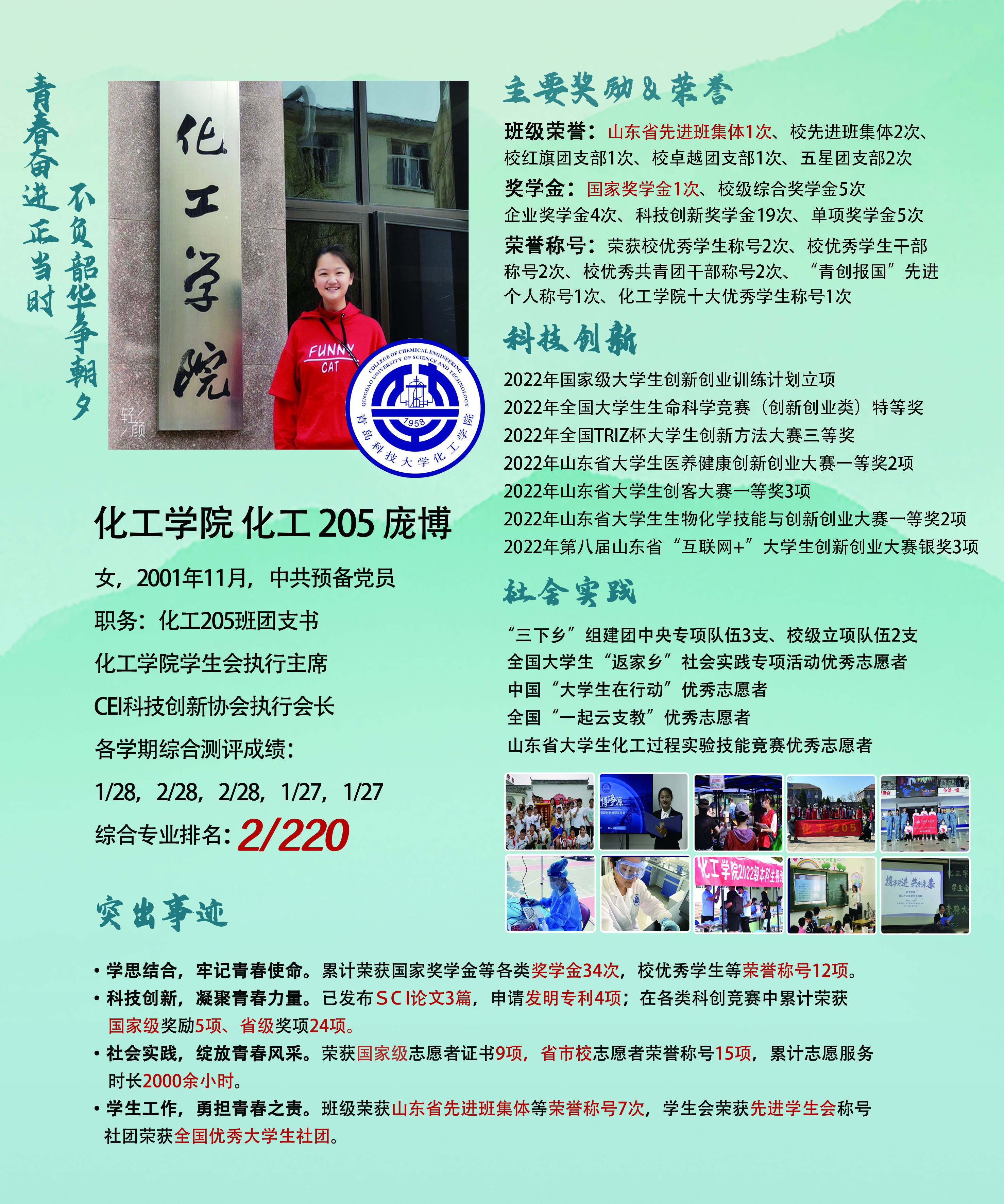 近日,由员工处开展的XC体育第十七届“十大优秀员工”评选名单公布,XCSport化工205班团支书庞博荣获“十大优秀员工”荣誉称号。