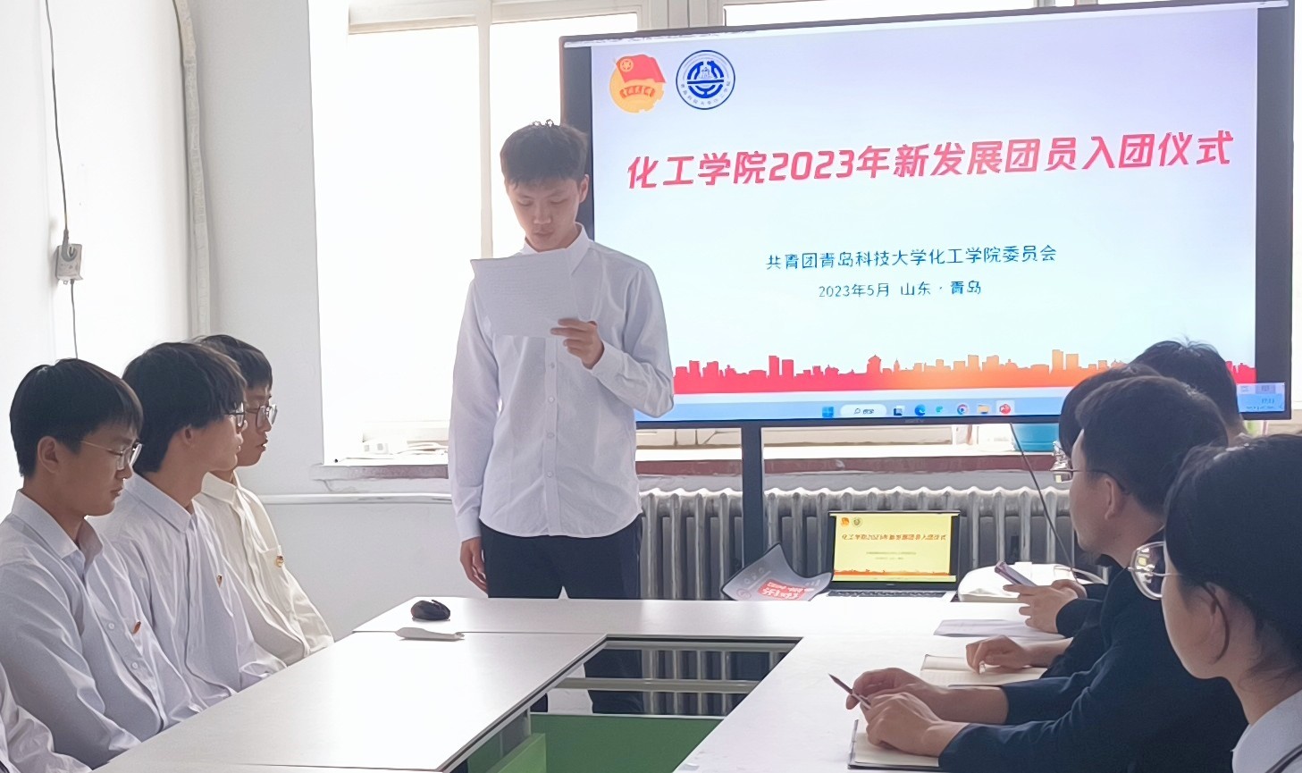 最后,耿赛向新同学提出希望和要求,寄语新团员要坚定理想、勤奋学习、勇于实践以及甘于奉献。同时,他希望新团员们记住今天的青春誓言,不断进取,积极向党组织靠拢,为早日成为国家栋梁之才而奋发图强。