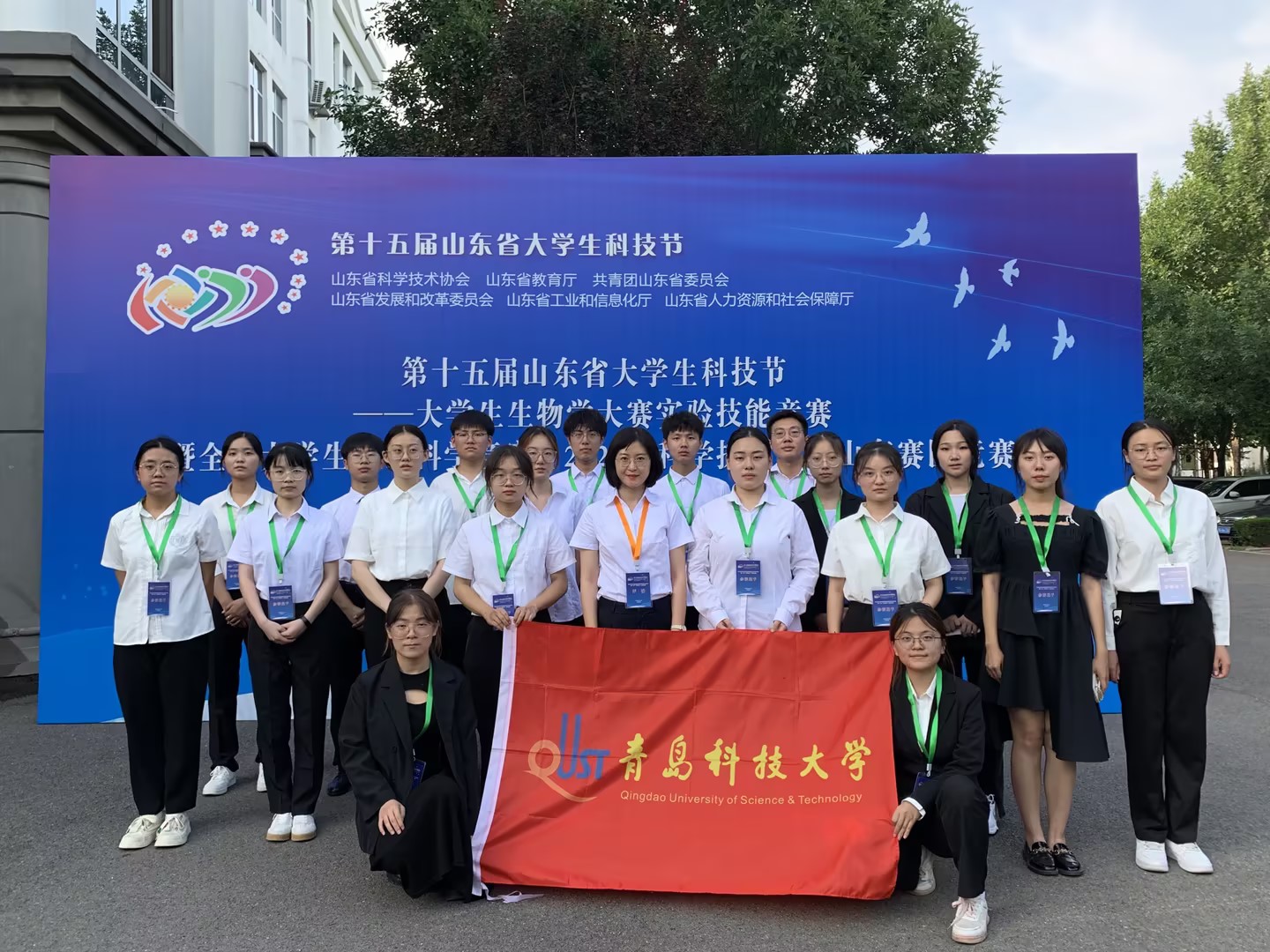 其中,金宏老师指导、冯雪霖同学负责的项目《洋甘菊精油体外活性极其微乳水凝胶的制备》,肖盟指导、刘倩同学的《黏土作用下蓝细菌诱导细粒碳酸盐的形成机制研究》,吴晓晨指导、鹿庆阳同学的《载槲皮素SF/SPI复合水凝胶的制备及创伤敷料应用研究》,孟凡庆指导、韩明明同学的《耀博净源——水体抗生素降解材料研发专家》,高巍伟指导、王文慧同学的《基于UiO-66/MoS2纳米复合材料的构建及高效协同抗菌研究》,公衍玲指导、姜咿名同学的《圆柚精油基于抗炎抗氧化对急性肝损伤和高血脂小鼠的保护作用》获山东赛区一等奖。