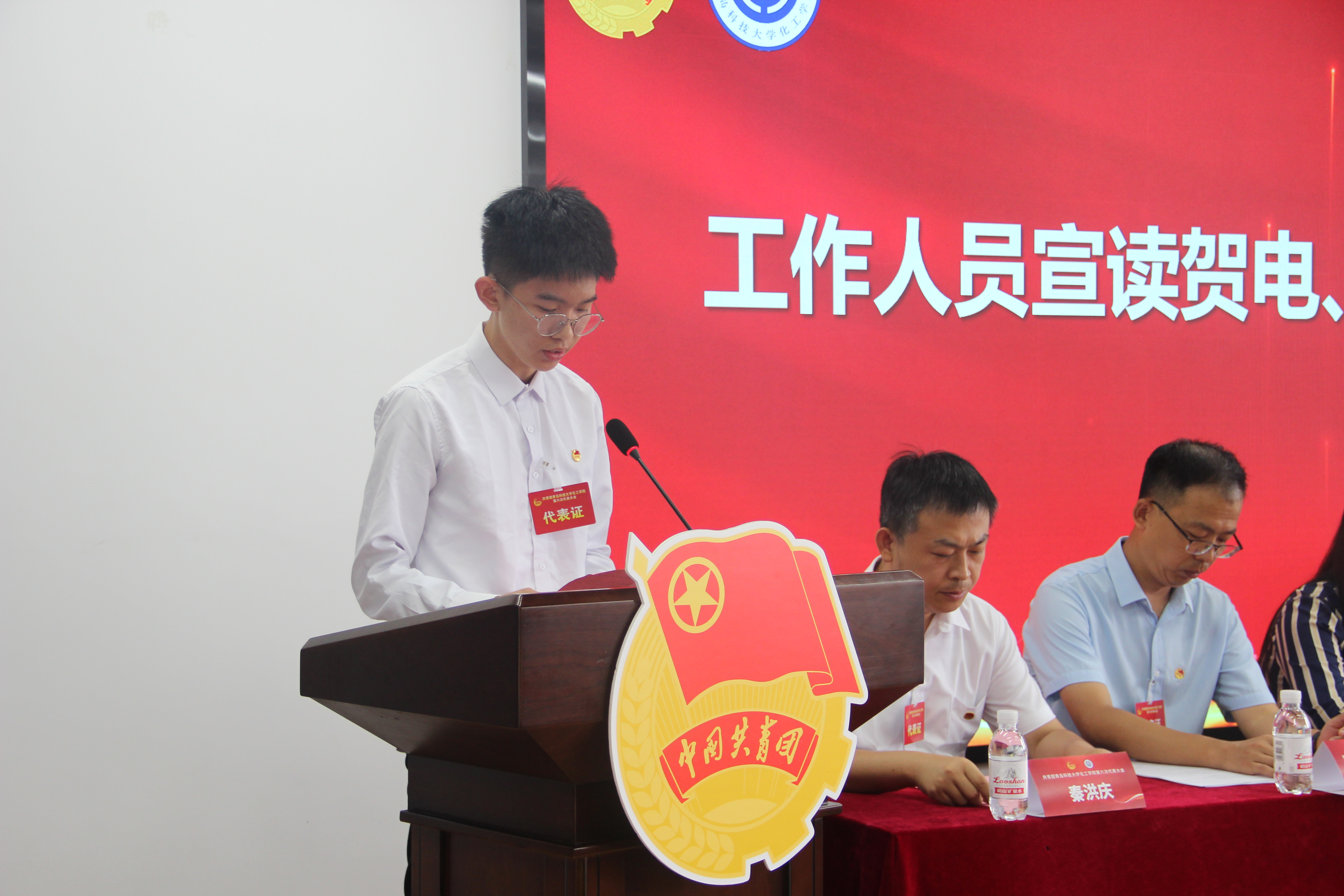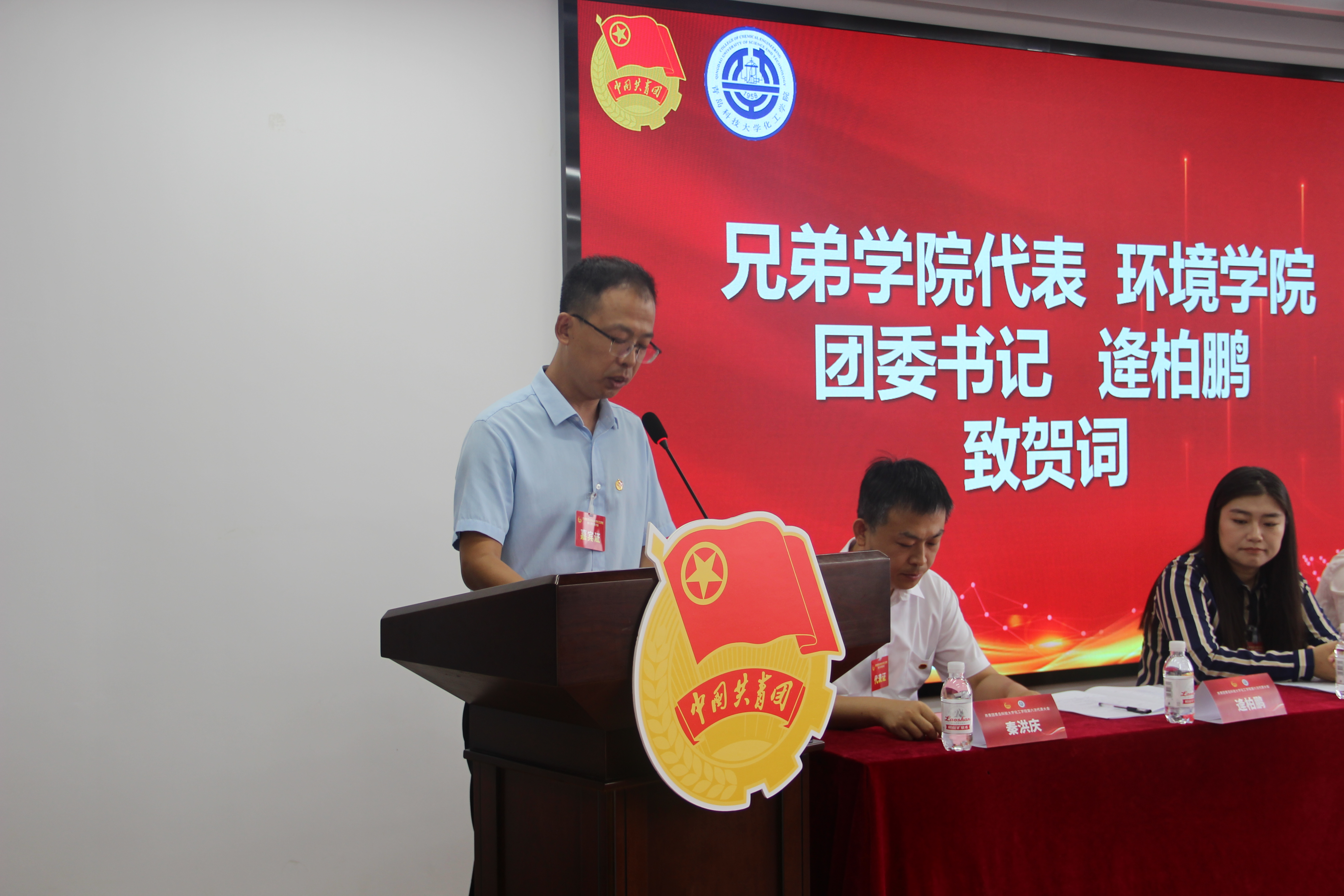 随后,大会宣读了校团委、各兄弟公司团委的贺电、贺信。环境公司团委书记逄柏鹏代表兄弟公司团委向大会致贺词。