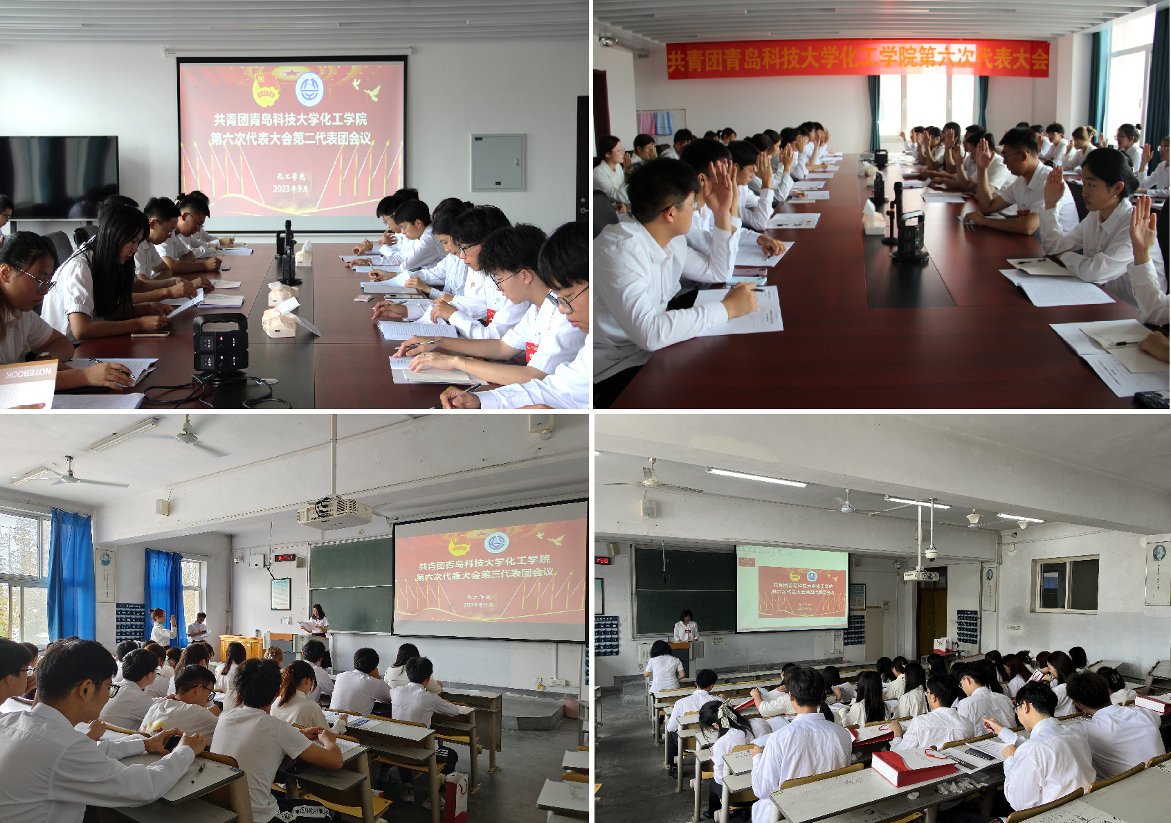 数据科学公司、材料公司、海洋公司、机电公司、高密校区、外语公司、材料公司、中德校区、化公司、数理公司、艺术公司、经管公司、中德科技公司、高分子公司、信息公司负责同志及团委老师参加大会开幕式。
