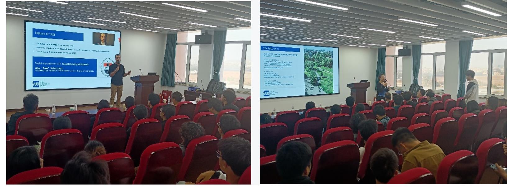 田文德对布鲁塞自由大学来访表示欢迎,他希望两方能以本次交流宣讲为契机,在员工联合培养、科研项目等方面积极探索实质性合作,拓展多元交流渠道。Maarten Gernay就VUB发展历史及专业做了介绍,同晓红针对毕业后有出国意向攻读硕士或博士和申请留学基金委奖学金的同学做互动交流,从交流的要求、流程、费用等方面深度解读中外合作办学项目双校园培养模式,鼓励员工通过项目交流加强国际化视野和专业储备。