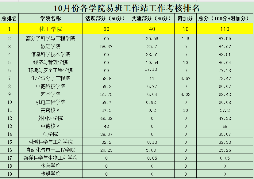 11月16日,XC体育易班发展中心公布了2023年10月份各公司(校区)易班工作站月度工作考核排名,XCSport易班工作站以总成绩110分位居全校第一名。