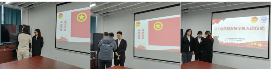 仪式在庄严肃穆的国歌中拉开帷幕。宋伟国宣读32位新发展团员名单。殷佳珞、乔毅、孙希玲为新发展团员代表佩戴团徽。