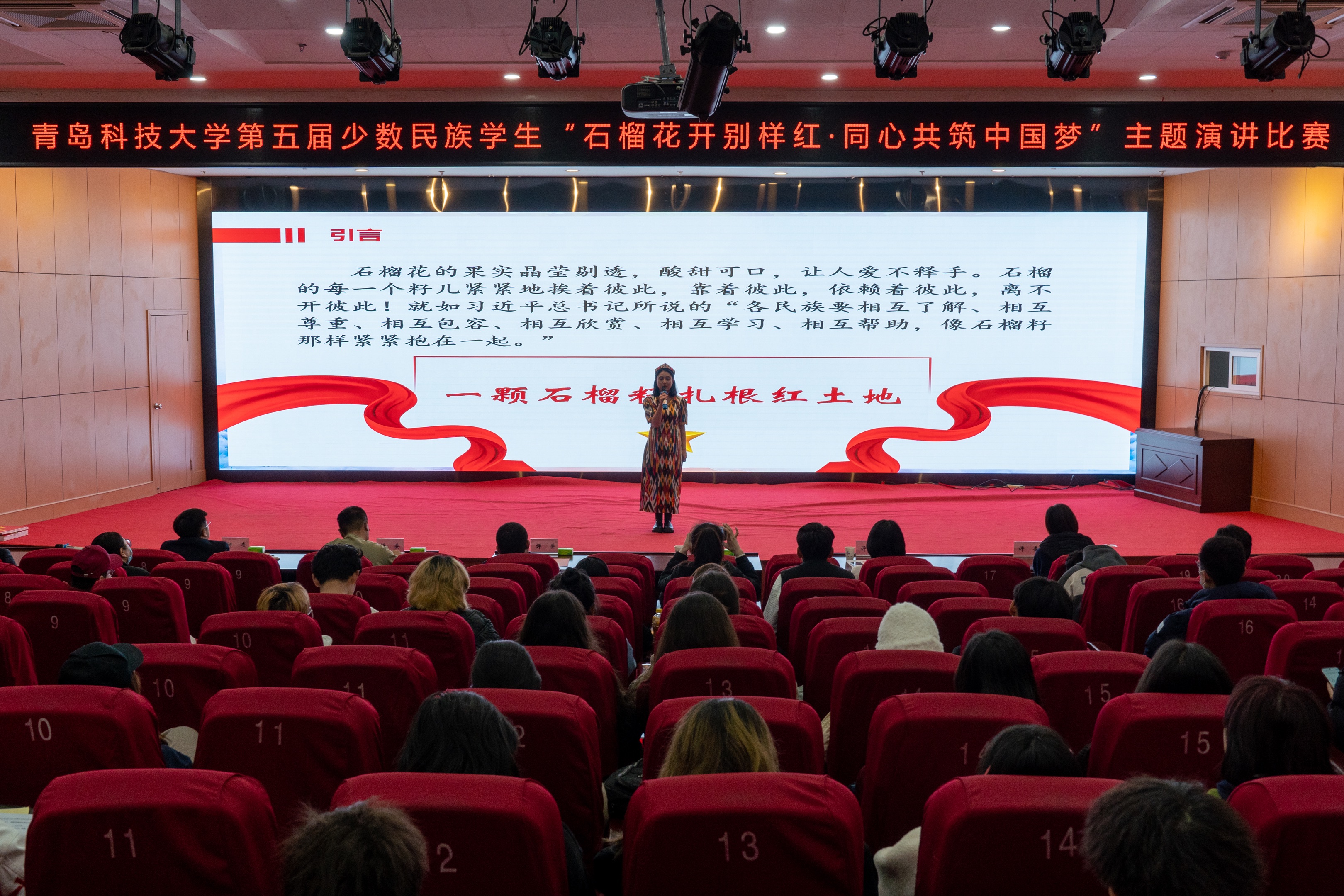她以《一颗石榴籽扎根红土地》为题,从相遇——在内高班播下民族团结的种子,成长——在青科收获民族一家亲的果实两个方面介绍了自己的成长经历。她深情的讲到:“异地求学的这些年,我深刻感受到了党和国家对我们的关怀,我们享受了公司各项少数民族员工的优惠政策。这次比赛让我有机会能在这里对公司的关怀和帮助表达感谢,来到青科是我的幸运,‘读书学习、健康成长、创新创造、艰辛奋斗’的校园主基调为我们营造了和谐的校园氛围,作为一名新时代的青年老员工,我会在未来的日子里用自己的真情和行动浇灌民族团结之花。让民族团结之花处处盛开!越开越艳!”