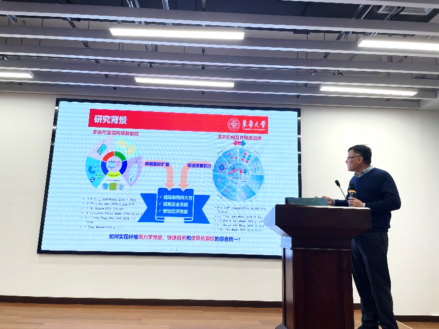 12月14日下午,东华大学化学化工与生物工程公司经理、教授、博士生导师、国家杰出青年科学基金获得者武培怡教授在CCF大楼814报告厅作了一场题为“智能软材料水相纺丝”的学术报告。公司领导、青年教师、研究生参加本次报告会。讲座由公司副董事长李志波教授主持。