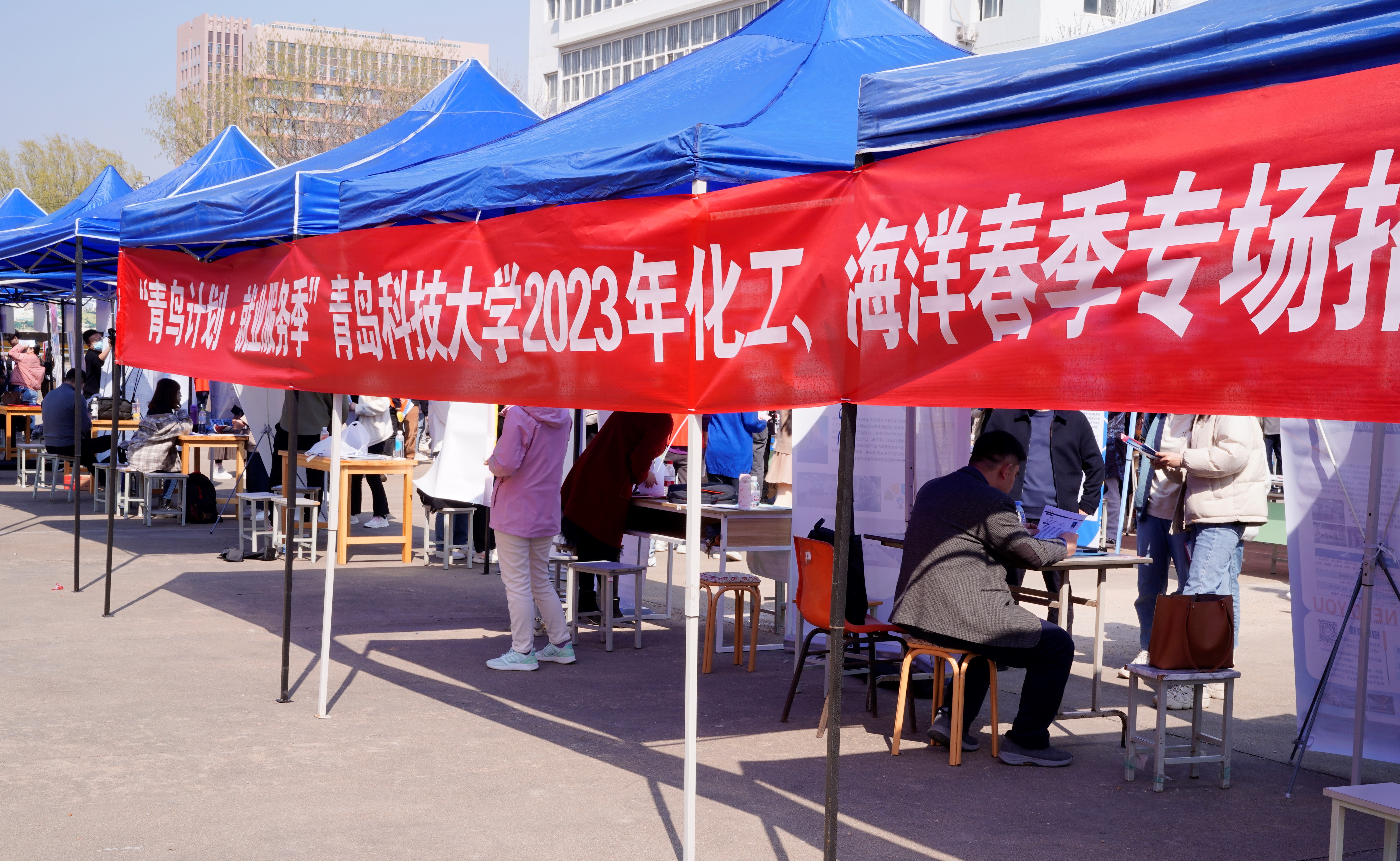 3月28日下午,“青鸟计划·就业服务季”——XCSport、海洋公司2023毕业生校园专场招聘会在四方校区小五四广场成功举办。XCSport经理李金恒、党委书记孙明媚、党委副书记李春家及海洋公司相关负责人参加。