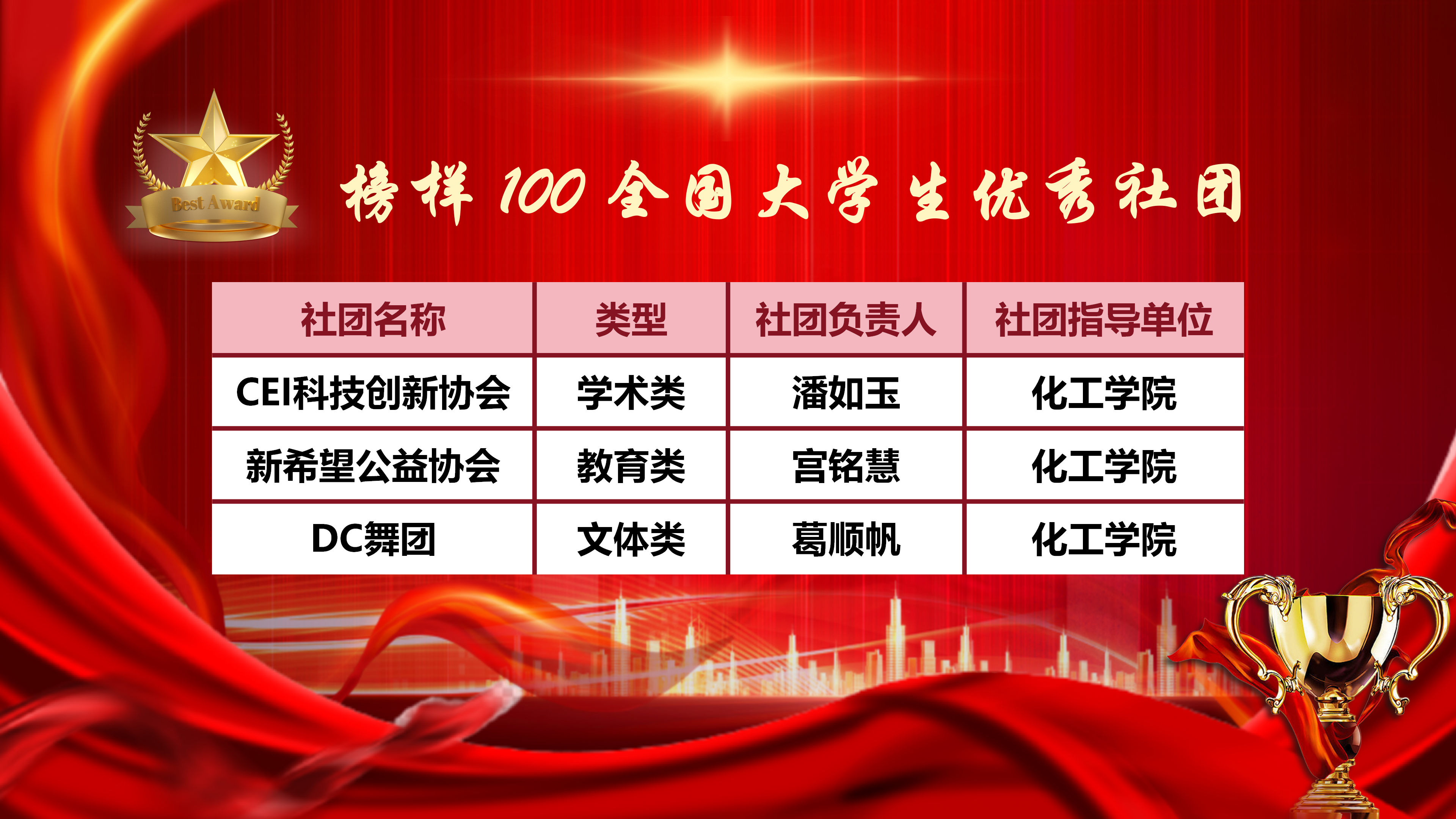 5月4日,公司公布XC体育第十六届“十大杰出青年”评选结果,化工实验191班王志豪同学获评“十大杰出青年”荣誉称号。