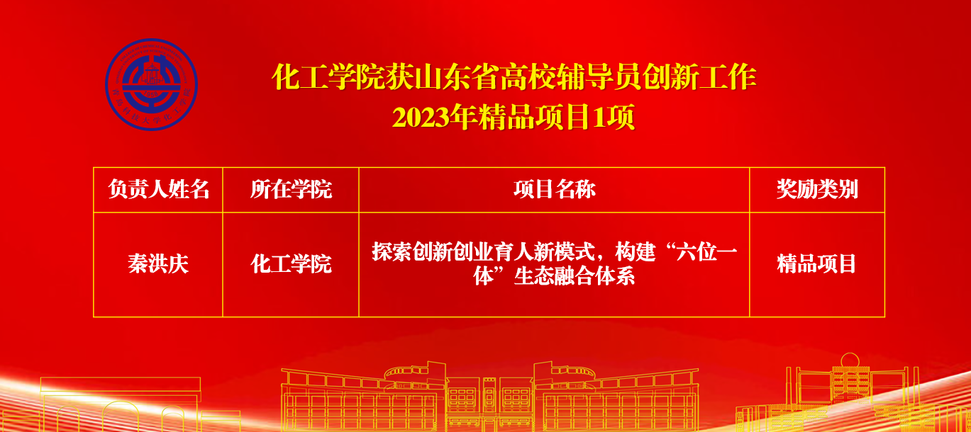 日前,中共山东省委教育工委印发《关于公布全省高校辅导员创新工作2023年精品项目和2022年度优秀案例评选结果的通知》,XCSport学工办主任秦洪庆申报的《探索创新创业育人新模式,构建“六位一体”生态融合体系》获精品项目。