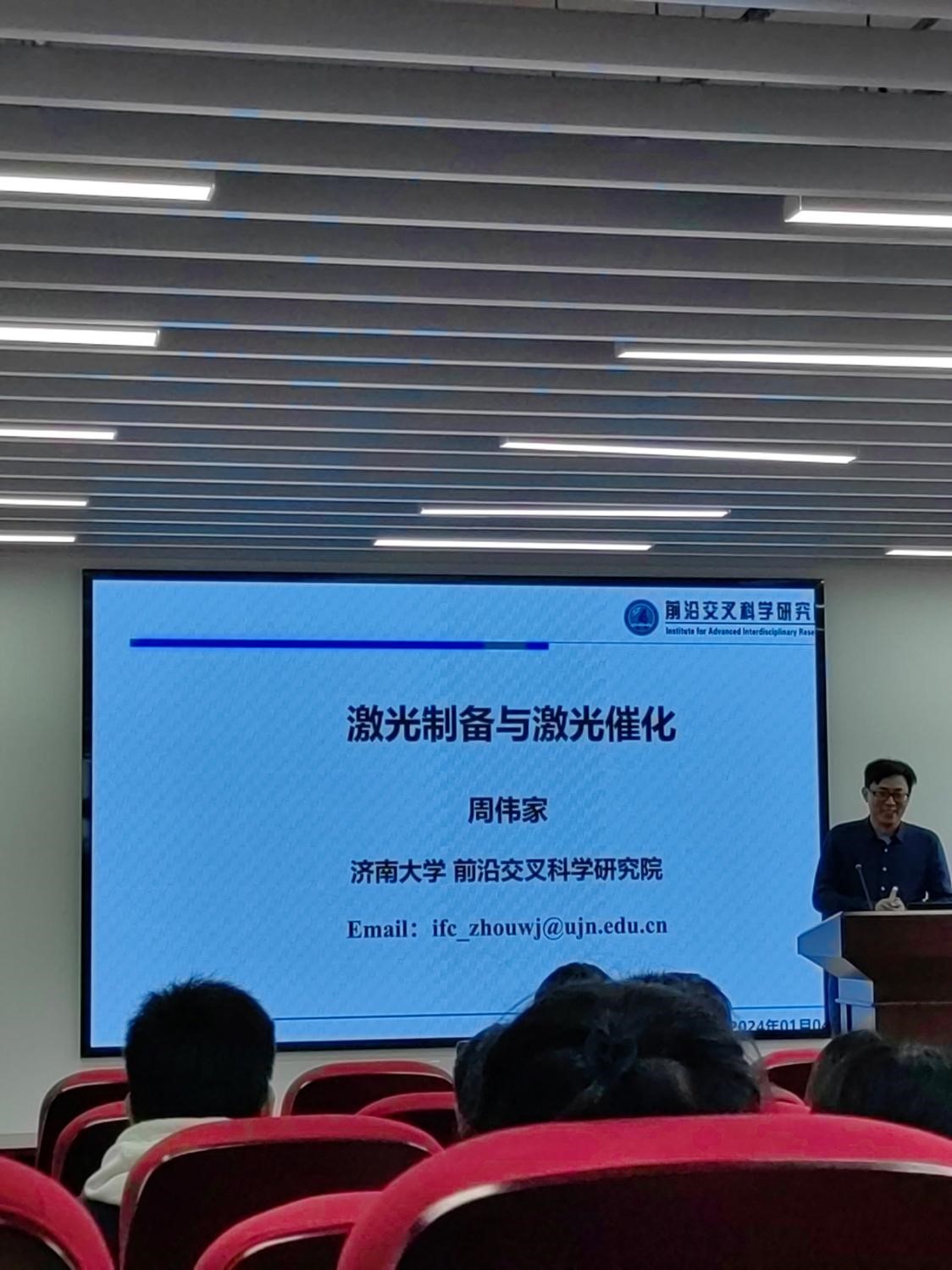 2024年1月4日下午,济南大学前沿交叉科学研究院周伟家教授在XC体育四方校区CCF楼814报告厅作了题为《激光制备与激光催化》的学术报告。180余名师生听取报告并参与了学术交流。
