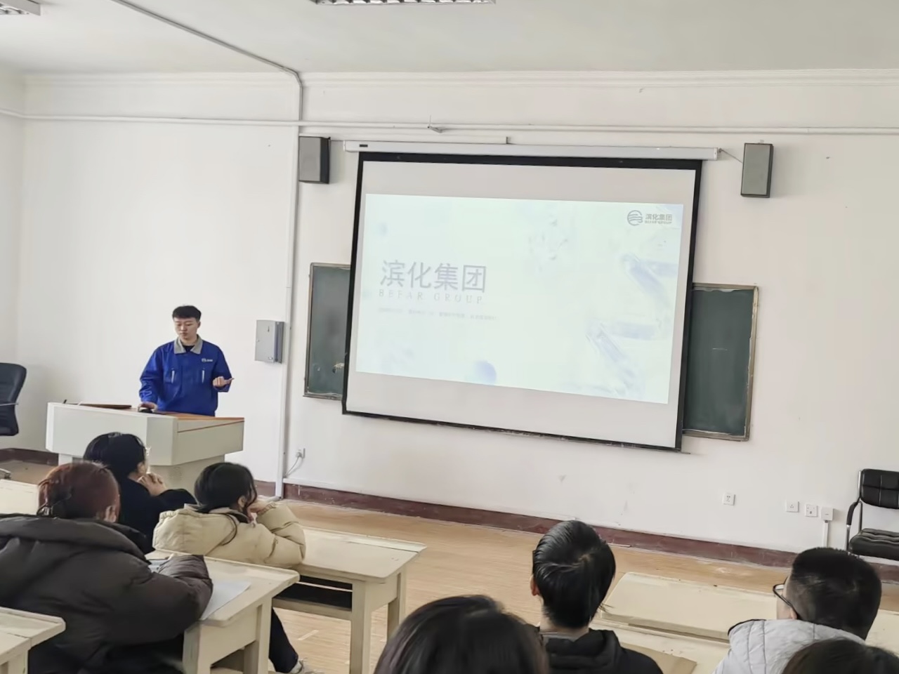 招聘会上,滨化集团刘经理向同学们详细介绍了公司的发展历程、业务范围以及未来规划。随后,解读了各个部门的职能和招聘岗位的具体要求,为员工们揭开了企业内部的运作机制和岗位的工作内容,帮助同学们了解各个岗位的职责和要求。同学们积极踊跃地参与到招聘会的互动环节中,提出了许多关于岗位要求、发展前景等方面的问题。通过互动交流,同学们更加深入地了解了滨化集团,也展现了他们的学习成果和个人素质。