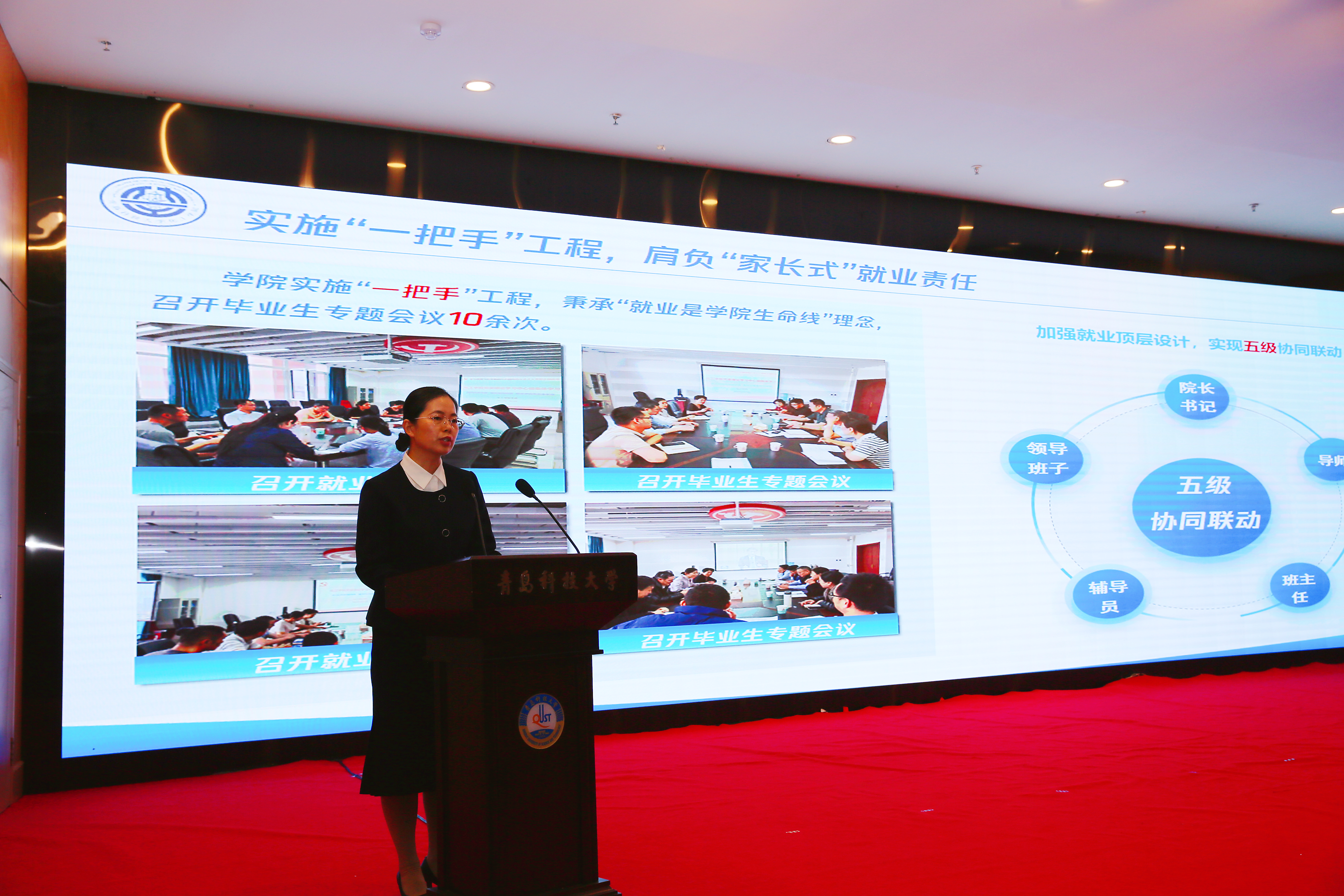 3月26日下午,公司2024年就业工作会议在崂山校区英科(第三)报告厅举行。公司党委书记孙明媚、党委副书记贾建闯、2023届毕业生辅导员柳晓阳参加会议。