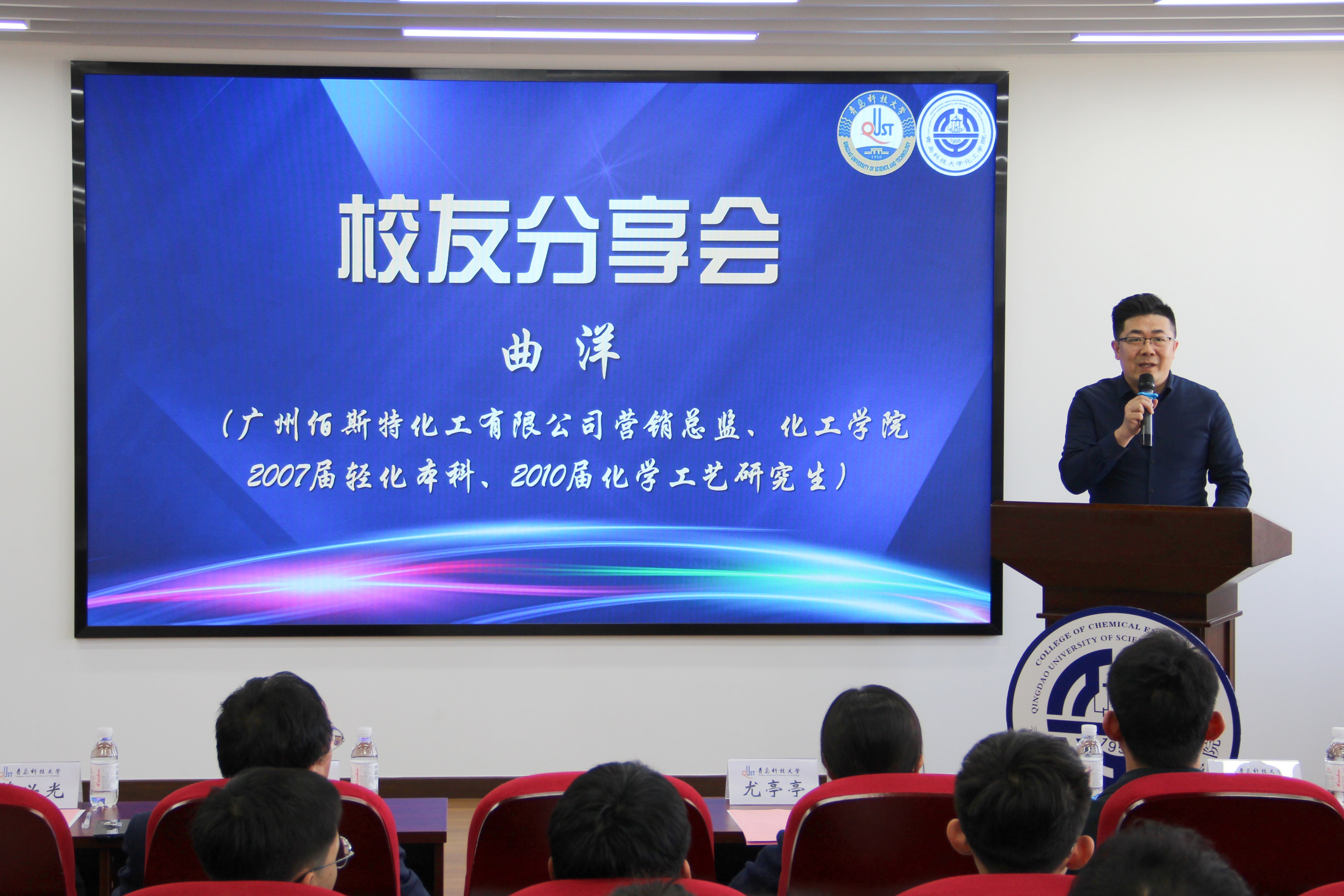 2007届轻化本科生、2010届化学工艺研究生员工代表,广州佰斯特化工有限公司营销总监曲洋作员工分享。他回忆了自己在母校的学习经历,介绍了“佰斯特励志奖学金”设立背后的故事,希望同学们能够扎实学好专业知识,战胜各种风险挑战,在未来能够创造出更加辉煌的成就。
