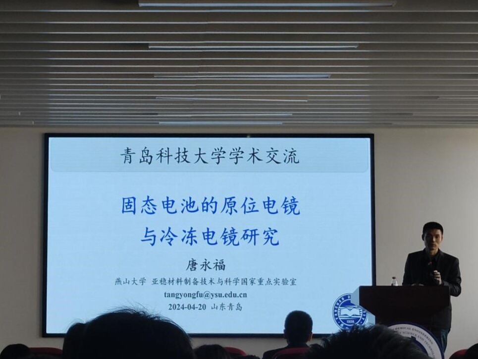 2024年4月20日下午,燕山大学唐永福教授在XC体育四方校区CCF楼814报告厅作了题为《固态电池的原位电镜与冷冻电镜研究》的学术报告。180余名师生听取报告并参与了学术交流。