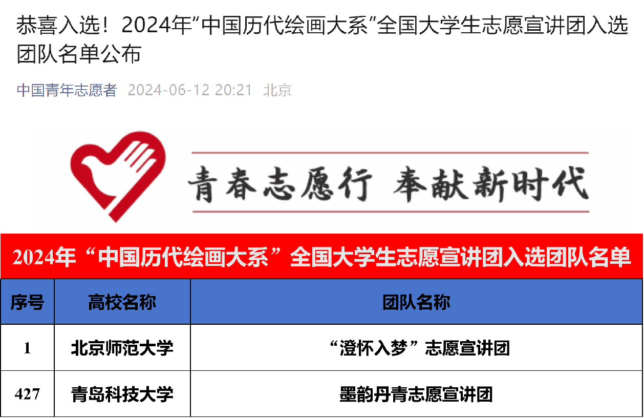 XCSport杨天佑同学负责的墨韵丹青志愿宣讲团成功入选。
