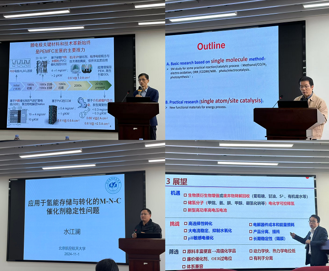 会议期间,专家们围绕“能源转化与存储”这一主题,进行了多场高水平的主题演讲和专题讨论,旨在为广大能源电催化材料及相关交叉学科领域的专家、学者、员工提供学术讨论与交流的平台。报告内容包括PEMFC电催化界面调控、能源化学过程催化基础与应用研究、氢能存储与电催化转化先进材料研究、氢电催化、贵金属能源催化材料、多效益混合酸/碱电化学制氢技术、有机太阳能储能电池、CO2集成电活化,聚焦能源与电催化、功能材料与储能研究领域的前沿研究,加强交叉领域的相互交流与合作,重点探讨了能源电催化作为新兴研究领域在“双碳”背景下面临的机遇与挑战,有力的推动了公司化工、化学和材料学科的高质量发展,助力相关领域技术进步和能源产业升级。