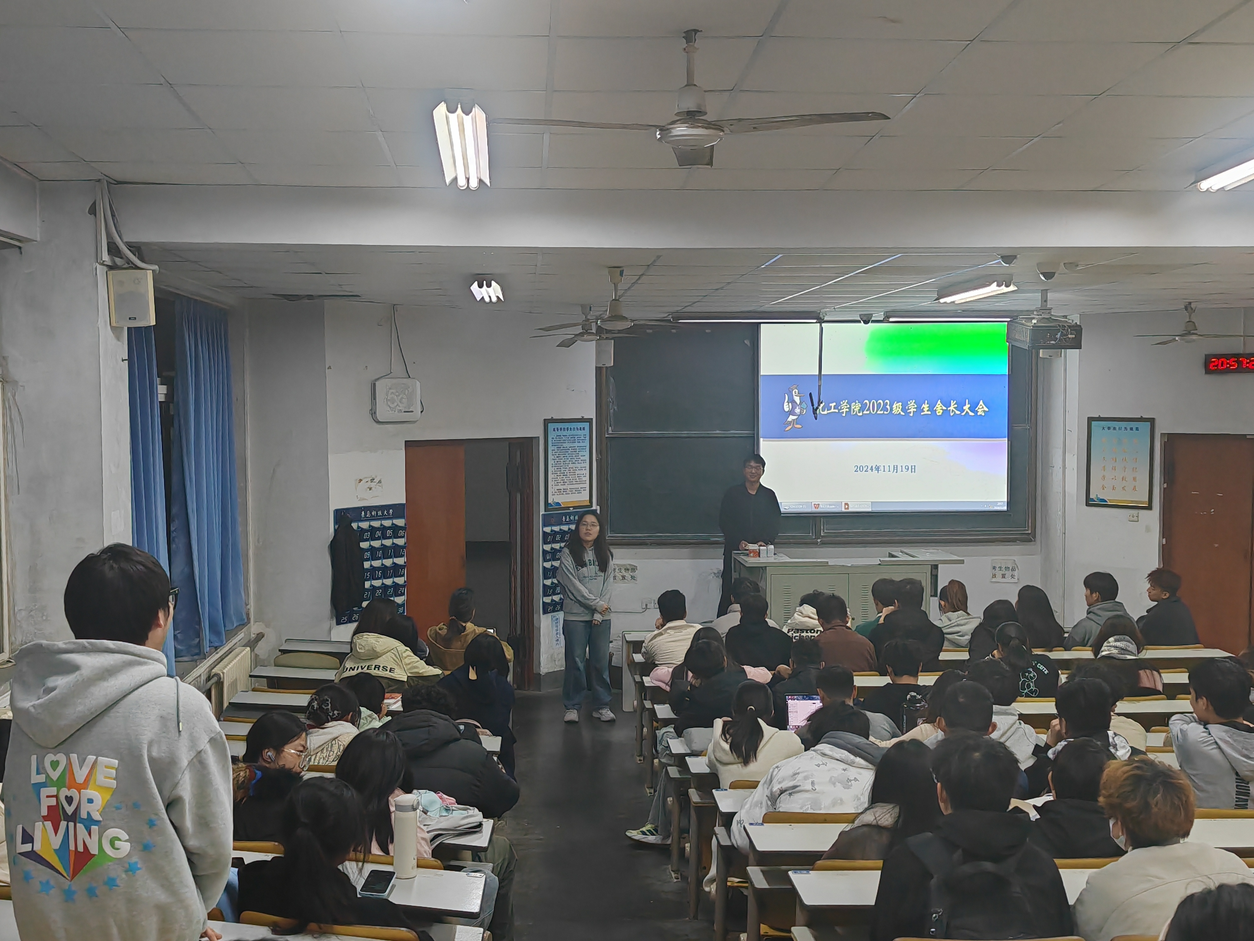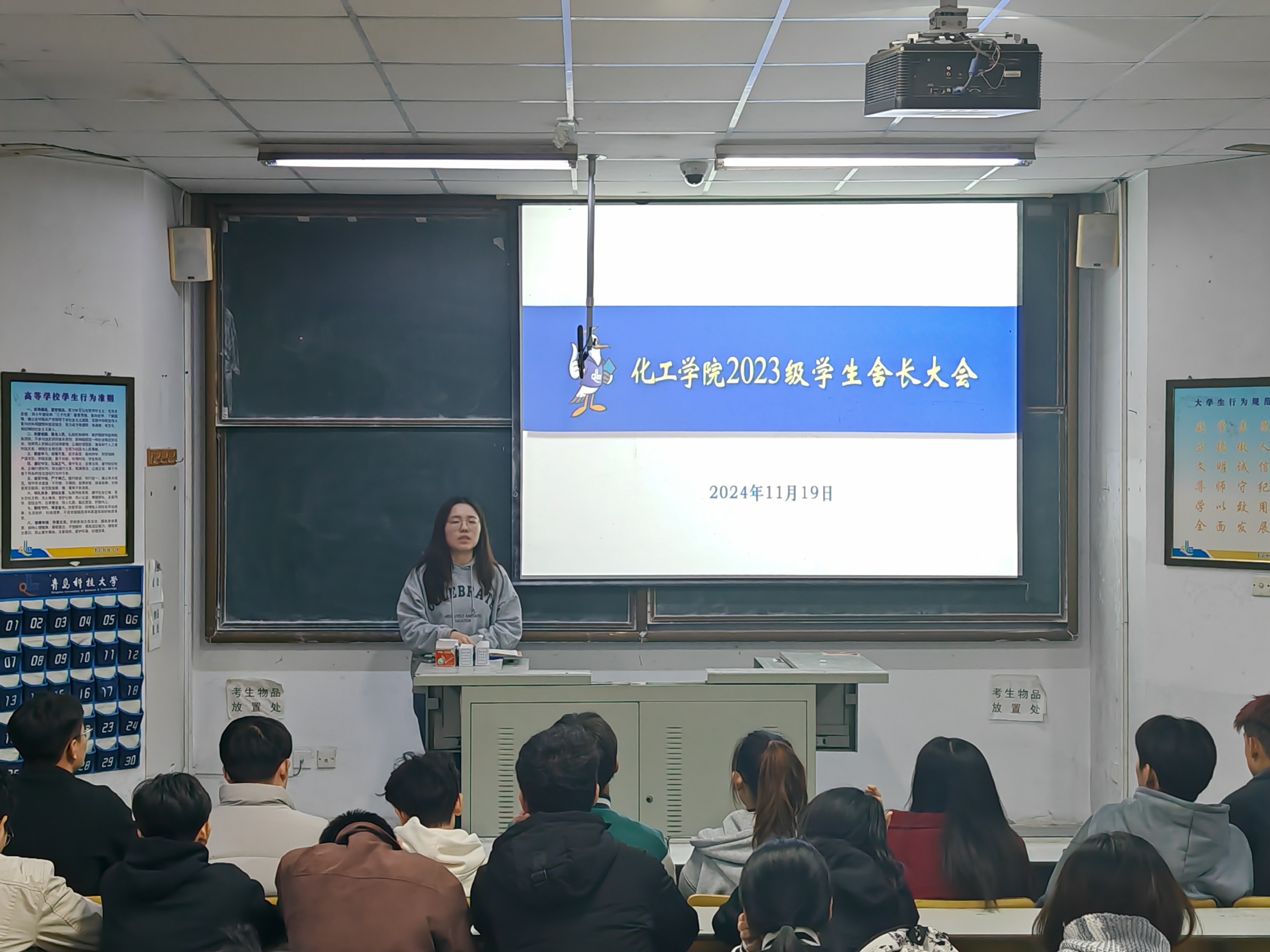 为加强宿舍文化建设,提升员工整体素质,营造安全、和谐、舒适的宿舍环境,2023级于11月19日在一教103召开舍长大会。会议由23级辅导员李颖主持,员工会生活部成员以及23级全体舍长参与。