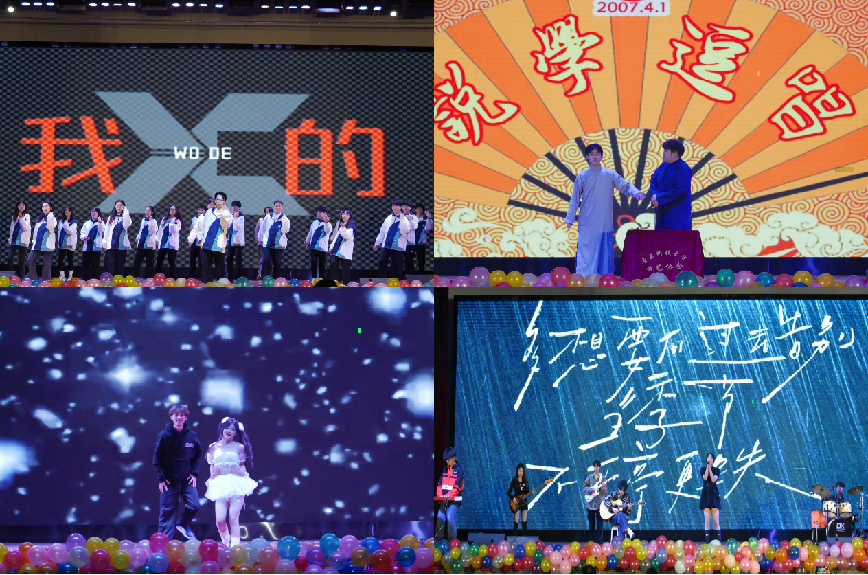 第二篇章,匠心逐光。XCSport第二十五届员工会主席团表演的歌舞《we are young》点燃全场;相声《四方诗》通过幽默的语言和情节,为观众带来了欢乐和笑声;舞蹈《PARTY》以充满节奏感的音乐和动态的舞步,展现出青年的朝气蓬勃;乐队表演的歌曲串烧《致青春》为观众呈现了一场活力四射、嗨翻全场的视听盛宴;手语操表演《逐梦少年,龙舞乾坤》通过精心设计的动作和充满活力的表演,展示了青年学子积极进取、敢于拼搏的精神面貌;歌曲串烧《倔强紫荆共椿心》用动听的旋律触动了观众的心弦,引发了情感共鸣;晚会在团委老师和新生班长团支书们共同演唱的《明天会更好》中落下帷幕。