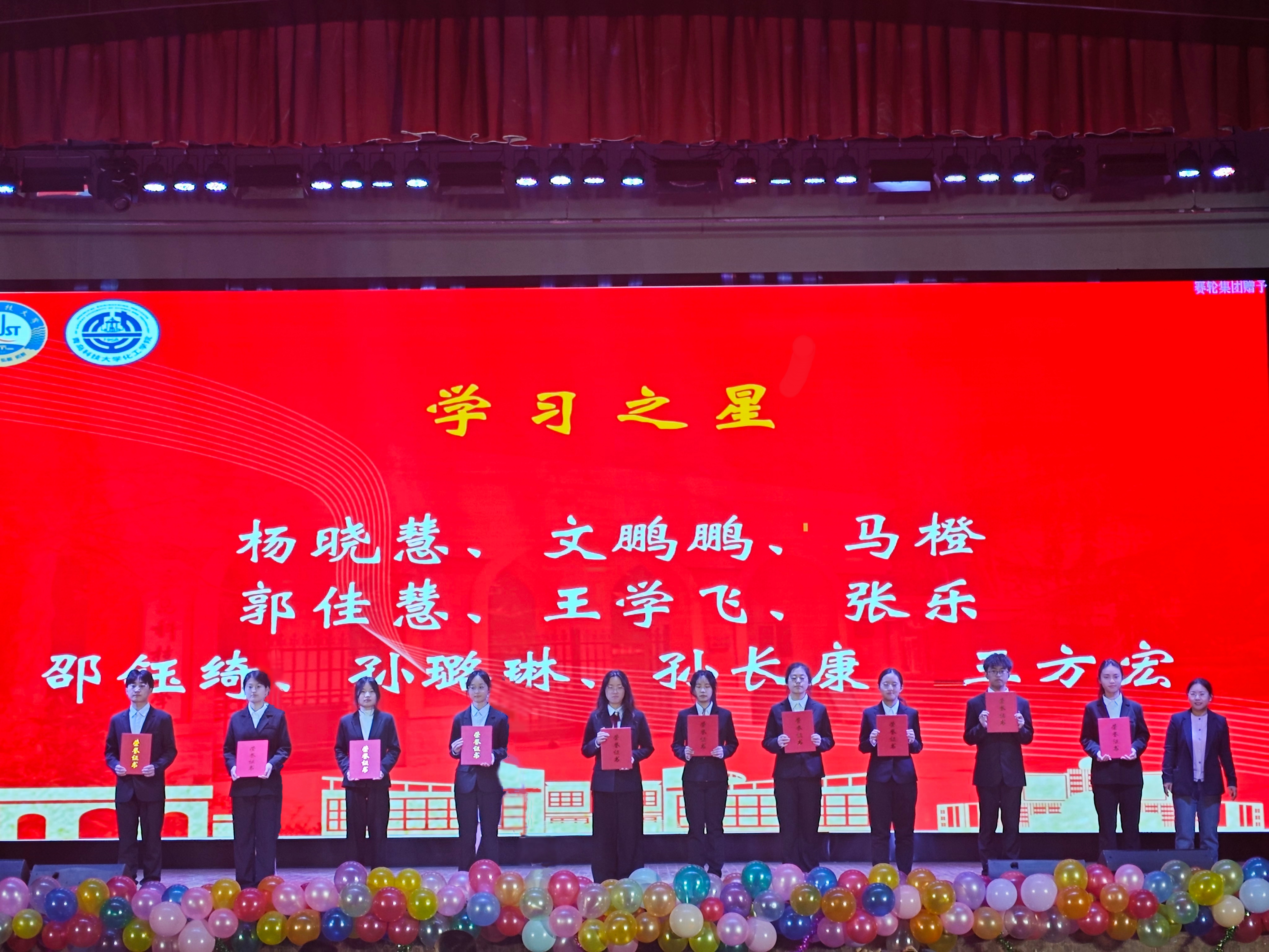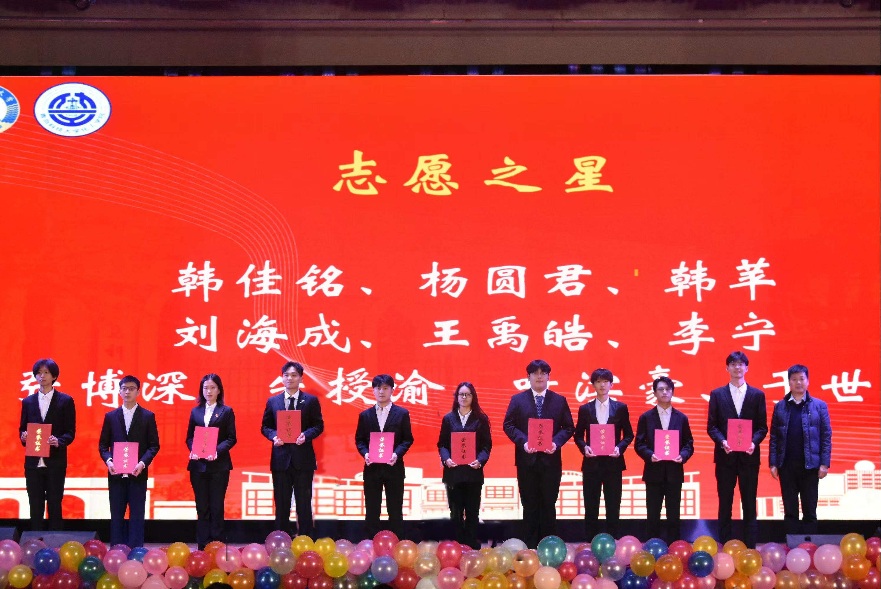 晚会中场进行学风建设表彰颁奖环节,党委员工工作部副部长李春家为山东省先进班集体、青科好班长、校十大自立自强标兵、自立自强先进个人颁奖;校团委副书记李航为第十四届“挑战杯”中国老员工创业计划竞赛国家金奖团队颁奖;公司党委书记孙明媚为国家奖学金、省政府奖学金获得者颁奖;副书记兼副经理贾建闯为XCSport第十届“十大优秀员工”颁奖;副经理高传慧为学术之星颁奖;副经理赵瑞阳为科创之星颁奖;教师代表王传兴、李国选、孙福进为志愿之星、体育之星、实践之星颁奖。