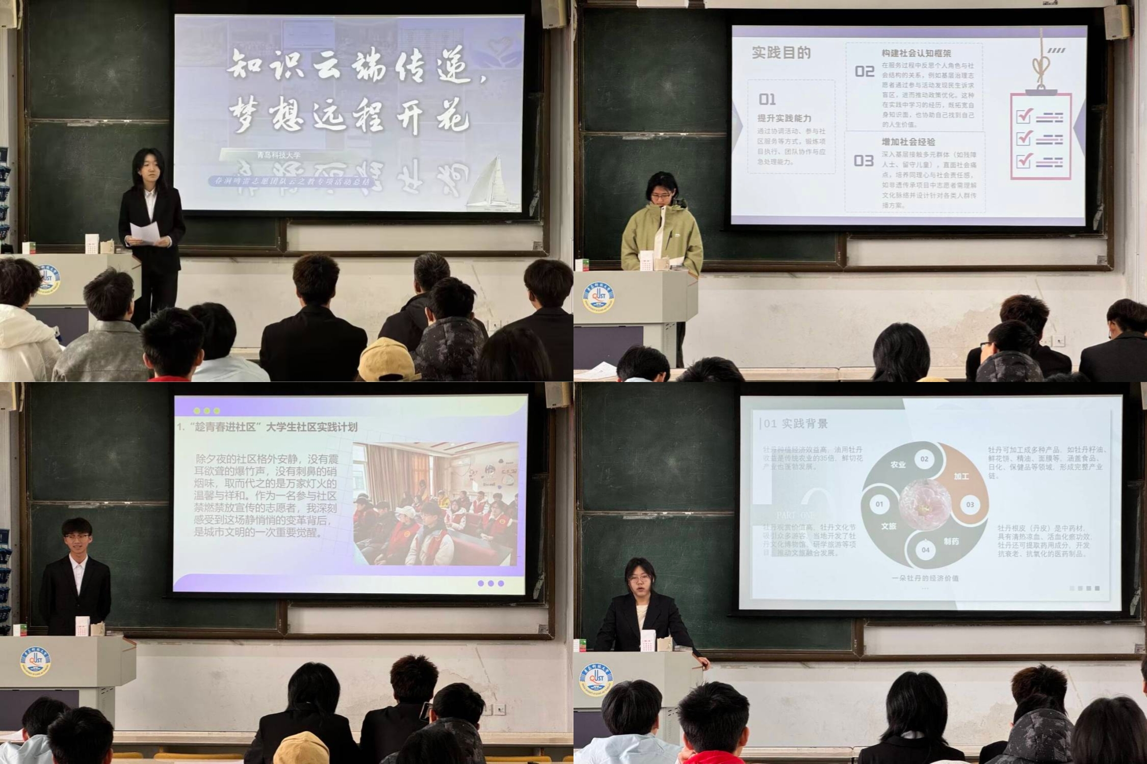 在分享环节中,来自不同实践团队的员工代表依次上台,结合精心制作的PPT和视频资料,分享了各自的实践历程。会上,李雪分享XC体育“春涧鸣雷”志愿服务团队投身教育公益,精心筹备、云端授课,助偏远地区孩子打开新世界大门,展现青年学子助力教育公平的风采;司丽珍讲述参与返家乡基层管理服务实践,在信息统计、社区服务中体会基层工作意义,坚定助力家乡发展决心;韩静娴分享在家乡康复医院“返家乡”实践,与孩子们拓印年画感受爱与希望双向奔赴,领悟生命力量与温暖;陈子鸣谈到参与返校宣讲,回溯成长、传递经验,坚定以分享助力学弟学妹追梦的信念。