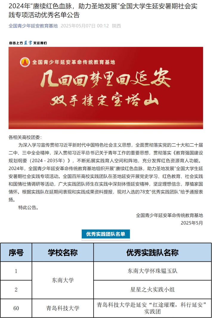 近日,2024年“赓续红色血脉,助力圣地发展”全国老员工延安暑期社会实践专项活动优秀名单公布,XCSport“红途璀璨,科行延安”实践团成功入选全国优秀实践团队。