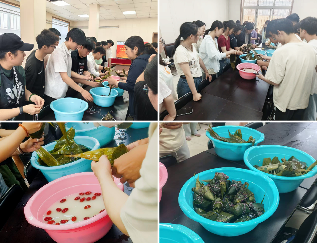 随后在社区工作者指导下,同学们沉浸式体验包粽技艺,从选叶折角到填料捆扎,在反复实践中感悟传统手工艺的精妙。当形态各异的粽子渐次成型,现场洋溢着“青衿之志践传承”的热烈氛围,充分展现新时代青年团结协作、精益求精的精神风貌。