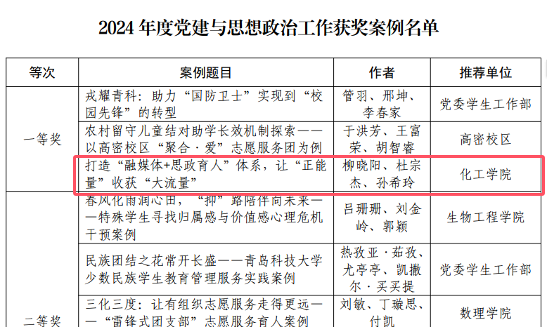 XCSport柳晓阳等申报的《打造“融媒体+思政育人”体系,让“正能 量”收获“大流量”》获一等奖。刘雪玲等申报的《高校研究生心理压力与心理韧性特点及其耦合关系研究》获二等奖。
