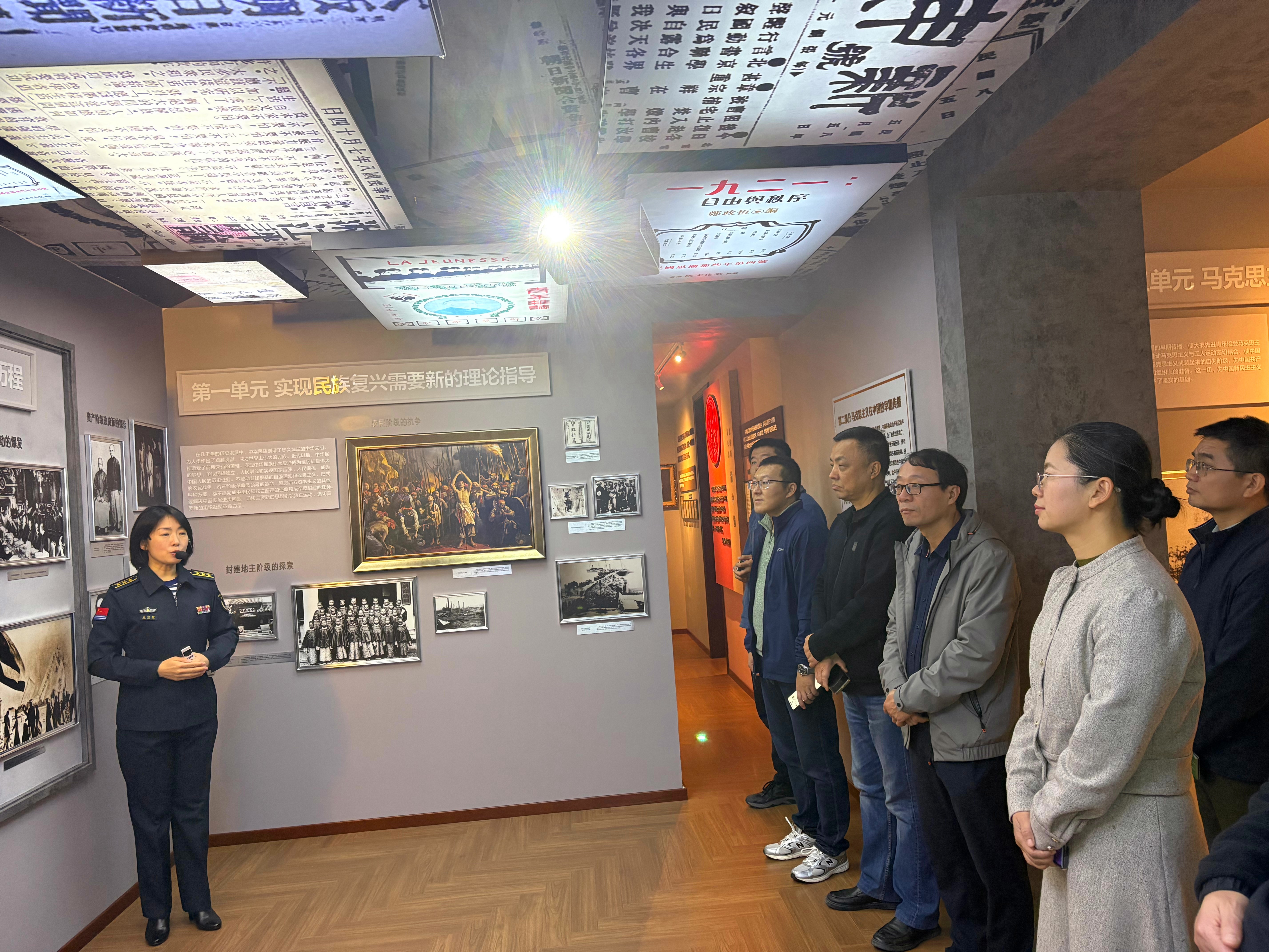 “马克思主义中国化时代化主题书苑”环境典雅、藏书丰富,系统展示了马克思主义中国化时代化的理论成果与发展脉络。理论学习中心组(扩大)成员在书苑工作人员的引导讲解下,深入学习了马克思主义中国化时代化的历史逻辑、理论体系和实践路径,并结合《习近平新时代中国特色社会主义思想学习纲要》等文献,围绕新时代如何推进理论创新、强化思想引领开展了交流研讨。