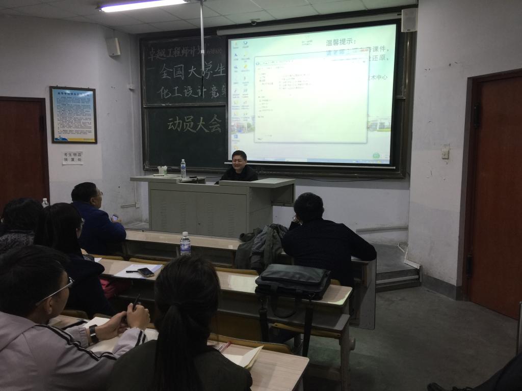 田文德老师首先介绍了出席本次动员会的教师,并简要介绍了卓越班的报名情况以及王政老师的工作经历,强调了化工设计的意义,对本学期的有关辅导工作安排进行了说明。王政老师具有长期从事化工设计教学与实践的丰富经验,并长期担任全国老员工化工设计竞赛总决赛的评委,对化工设计规范和行业发展具有深入的了解。