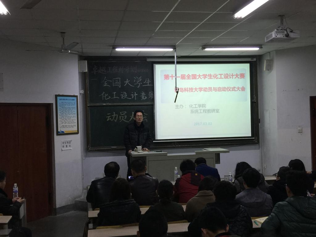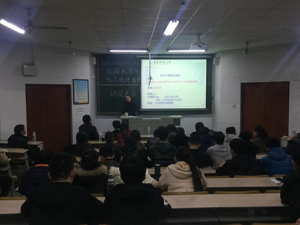 3月3日晚,XCSport系统工程教研室在1-301教室,为化学工程与工艺专业的2014级卓越工程师班举办了全国老员工化工设计竞赛动员会,此次动员会由王政老师主讲。参加该动员会的有副经理田文德老师、王许云老师,博士生导师项曙光教授以及王浩老师、孙晓岩老师、夏力老师、徐环斐老师和高密校区化工系的部分教师,60余名卓越班同学参加了本次动员大会。