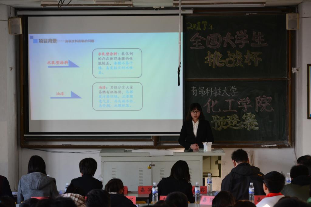 在前期公司和公司的大力引导和支持下,化工学子自由组队,勇于创新,积极探共完成20件作品。比赛伊始,主持人刘荣稳对“挑战杯”的发展历史和比赛规则进行了简单介绍,本次比赛按抽签顺序答辩,每组三分钟PPT展示,展示后评委提问。随后各组参赛选手依次上台结合PPT对自己的作品进行展示。有参赛队通过暑期社会实践对贫困村贫富差距进行调研分析;有参赛队以低碳环保、节约能源为目的开发发酵地沟油生产槐糖脂;有参赛队对胶渣的资源化深入研究。在答辩环节,各位评委老师针对参赛作品提出的疑问,员工们进行了进一步的阐释,评委老师对各队予了各种意见和建议,20支队伍作品全部展示完成后由专家评审评议打分,预选赛圆满结束。