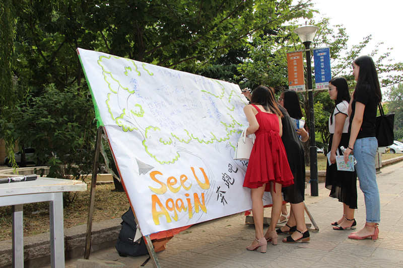 “奔跑吧,化工人”活动是在一教门口、小五四北、升腾广场、第一行政楼等八个特色地点,分别设立八个签到点,每一个签到点都设有一个闯关游戏,通过闯关游戏后,将会得到每个地点的签字,通过所有签到地点后,将会凑成一句话,最后,回到一教门口并在留言板上写下对母校的寄语,得到毕业小礼品。大四的同学们大多结伴同行,享受游戏乐趣的同时,再次感受校园美丽。“信语心愿”活动是由在校员工在展板上或是以书信形式写下对即将离开的学长学姐们的期望与祝福。活动开始,同学们纷纷参与其中,在心愿墙上写下对学长学姐最真挚的祝福,祝福的话语虽然简短,但却真切、淳朴,字里行间洋溢着学弟学妹们对毕业生们的美好祝愿。
