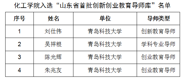 7月5日,山东省教育厅公示了《山东省首批创新创业教育导师库名单》,XC体育共有46名导师入选,其中XCSport有4名导师入选。